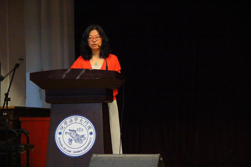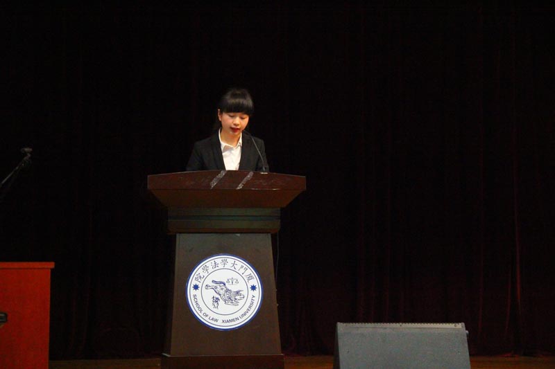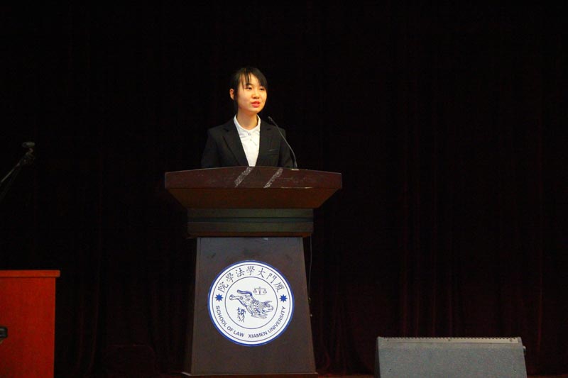 最后,法学院党委副书记周蕾老师上台致以闭幕词,她先对本次学生代表大会的举办做了积极的评价,然后简洁地表达了自己对学生工作的看法,向新一届的学生委员提出期望并给予充分的鼓励,希望在师生的共同努力下让厦门大学法学院不断进步,让法学院的学生们能够愉快、自信地在此学习深造。
