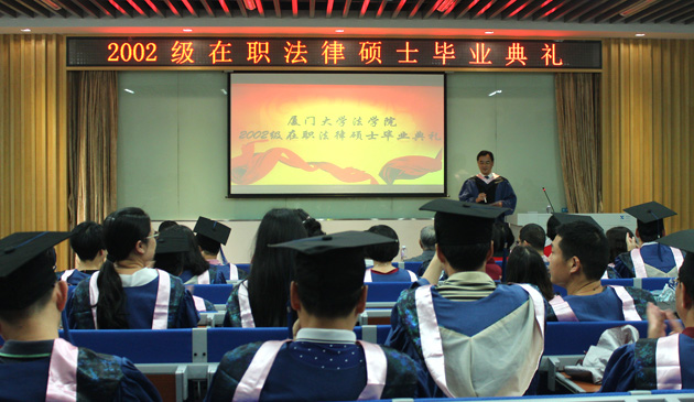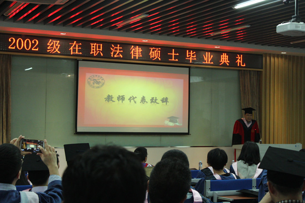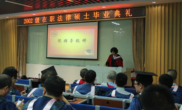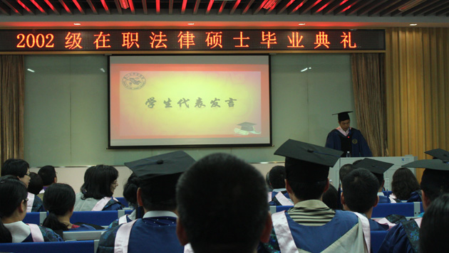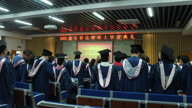 2002级在职法律硕士毕业典礼在校歌的合唱声中落下帷幕。