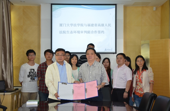 讲座结束后举行了一个简短的合作签约仪式,我院党委书记李智勇与福建省高级人民法院生态审判庭祝昌霖法官在《备忘录》上签字并合影留念。整场活动在友好、热烈的氛围中圆满结束。