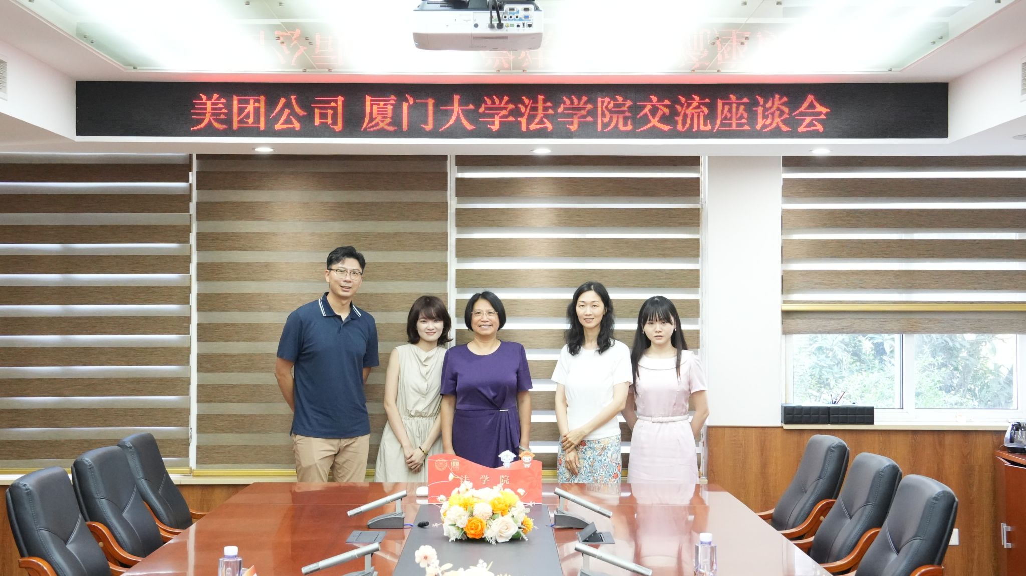 6月9日下午,美团华南高级法务总监梁博文、广东法务总监詹春梅来院洽谈合作,法学院党委书记何丽新教授、民商法教研室主任王兰教授、助理教授傅雪婷等参加座谈。