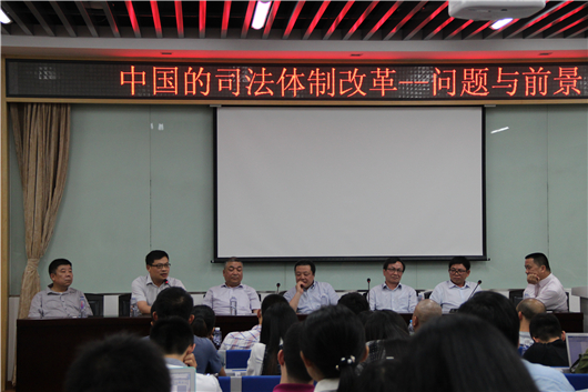 2015年5月22日晚7点,于厦门大学法学院B137举行了由青岛大学法学院院长董和平教授、中南财经政法大学王广辉教授、东南大学法学院汪进元教授、以及华南理工大学法学院副院长夏正林教授以及武汉大学法学院江国华教授五位宪法学学者带来的,以“中国的司法体制改革——问题与前景”为主题的学术讲座。在2014年,党的十八届四中全会提出全面推进依法治国后,中国司法改革如火如荼地开展着,因此以司法改革为题的本场讲座不仅吸引了全院各级同学,更是吸引了许多其他学院的老师同学前来聆听。