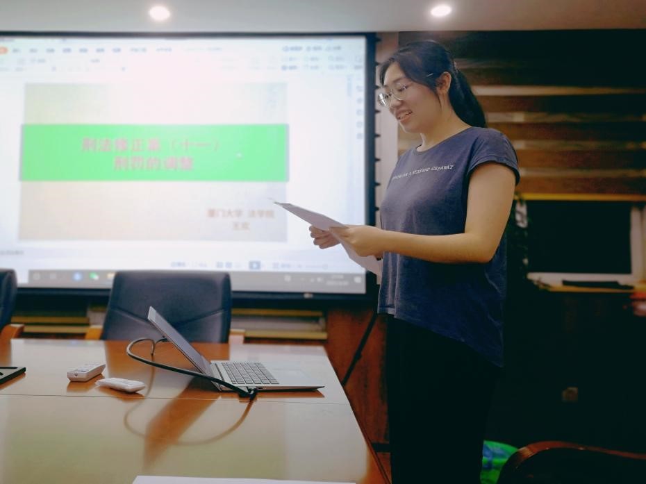 最后,王欢同学就本次《刑法修正案(十一)》对于刑罚的调整进行了自己的分析。她认为,罚金刑在牟利犯罪和贪利犯罪中具有主要地位,对短期自由刑也具有一定的替代地位,部分罚金刑改倍比罚金制为无限额罚金制,可能会导致根据不同的社会经济水平、犯罪情节、主观恶性、个人经济状况等因素进行不同适用的问题,我们需要更加注重罚金刑与主刑、罚款以及其他罚金刑之间的协调以及易科罚金刑的适用;同时,刑罚阶梯的完善、体系的协调也是至关重要的。