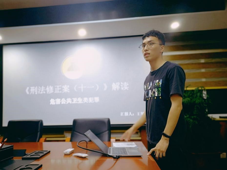 2021年3月30日晚7点,第二期刑事法研习会在法学院B220会议室顺利举行。本次研习会聚焦《刑法修正案(十一)》中的热点问题,六名研习会成员分别就自己感兴趣的议题做了主题报告,刑法教研室汪东升老师担任主持人和点评人。会议吸引了来自不同专业的多名同学前来观摩旁听。