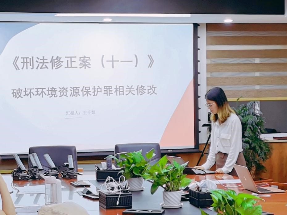 第四位报告人王千慧同学主要就破坏环境资源保护罪的修改进行了条文分析和修改总结。她认为,修改过后的污染环境罪与新增的非法猎捕、收购、运输、出售陆生野生动物罪都出现了与相关司法解释衔接断层的问题;同时,该节罪名的修改基本上都体现出了兼顾人类效益和生态效益的立法理念,但确实也呈现出了犯罪圈扩大的现象,并出现了立法科学性论证不足的问题,而环境犯罪立法是否能够摆脱象征性立法嫌疑还需要立法、司法与执法的共同努力。