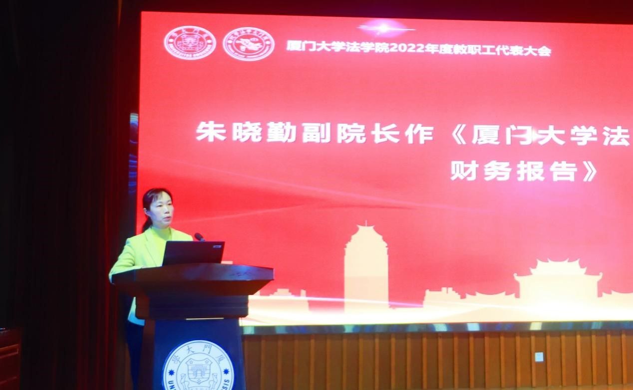 会议第三项,由朱晓勤副院长作2022年度法学院财务工作报告。2022年度,全院教职工克服新冠疫情影响,积极开拓财源,稳健保障支出,学院各项事业顺利开展。