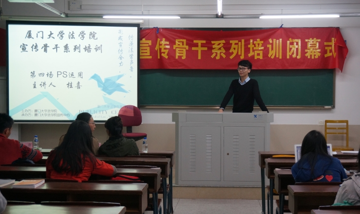 此次宣传骨干系列培训由中共厦门大学法学院委员会主办,法学院宣传中心承办,共有四场,涵盖了新媒体运用、新闻撰写、摄影摄像、平面设计方面的内容。希望这次培训能给我院的宣传工作注入新的力量,推动我院宣传工作踏上新的台阶。