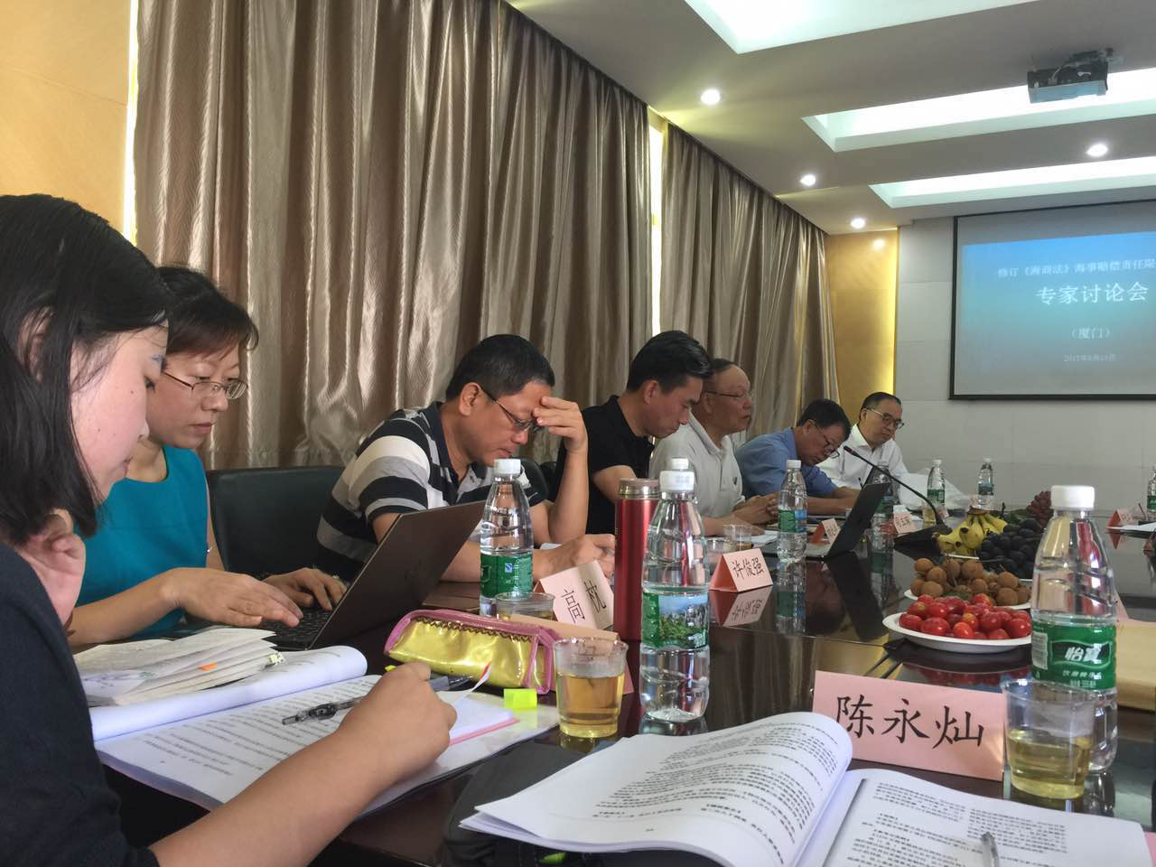 2017年8月13日,“修订《海商法》海事赔偿责任限制章节”讨论会在厦门大学法学院419会议室召开。大连海事大学司玉琢教授、王彦君教授、初北平教授,礼德齐伯礼律师行李连君律师,厦门海事法院许俊强副院长,和《海商法》第十一章“海事赔偿责任限制”修改研究课题小组何丽新教授(厦门大学法学院)、邬先江副院长(宁波海事法院)、夏元军副教授(大连海事大学法学院)、陈亚法官(厦门海事法院)、谢美山律师(上海锦天城律师事务所)以及广东敬海律师事务所厦门分所李荣存主任、李澜律师,福建世礼律师事务所陈永灿律师,福建旭丰律师事务所高枕律师共计14人出席本次专家讨论会。厦门大学法学院党委书记李智勇出席本次会议。本次讨论会由何丽新教授主持。