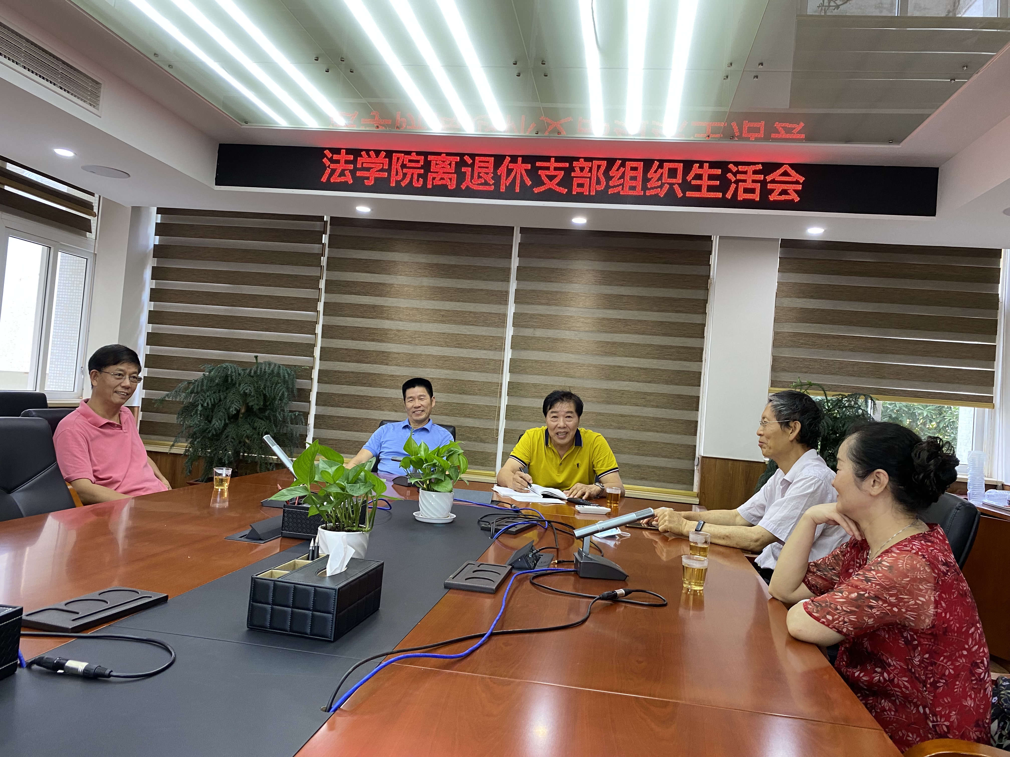 5月19日下午,法学院离退休教工党支部在220会议室集中学习习近平总书记致厦门大学建校100周年贺信精神,法学院党委书记许和山参加会议,陈文彬、冯德昌、陈国金、梁鸣玲、杜震农等离退休同志出席会议。