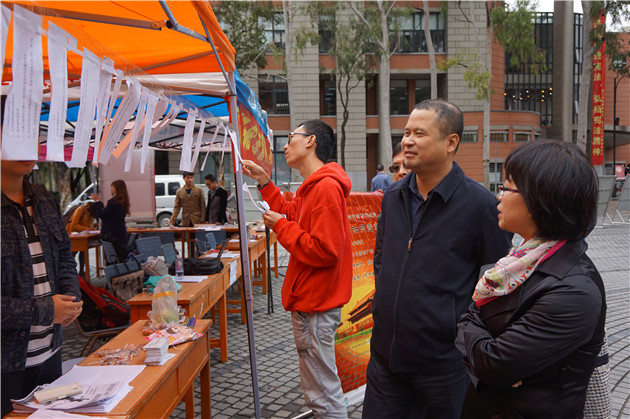 2014年12月4日上午,厦门大学全国法制宣传日暨首个“国家宪法日”系列普法宣传活动在三家村学生广场隆重举行,活动由教务处、学生处、校团委、法学院共同举办。校党委副书记林东伟、学生工作处处长夏侯建兵、校团委书记陈怀锋,法学院党委书记李智勇亲临活动现场指导。