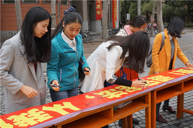 万人宪法宣言签名活动在厦门大学、北京大学、福州大学等全国十多所高校同时开展,采用统一的宣传标语——“维护宪法,人人有责!遵守宪法,从我做起!”。我校许多师生在巨型条幅上郑重签下自己的名字,为推动我国宪法建设许下庄严承诺。许多同学表示将积极学习宪法,了解宪法,全面提高法律素养,为推进我国法治建设贡献力量。