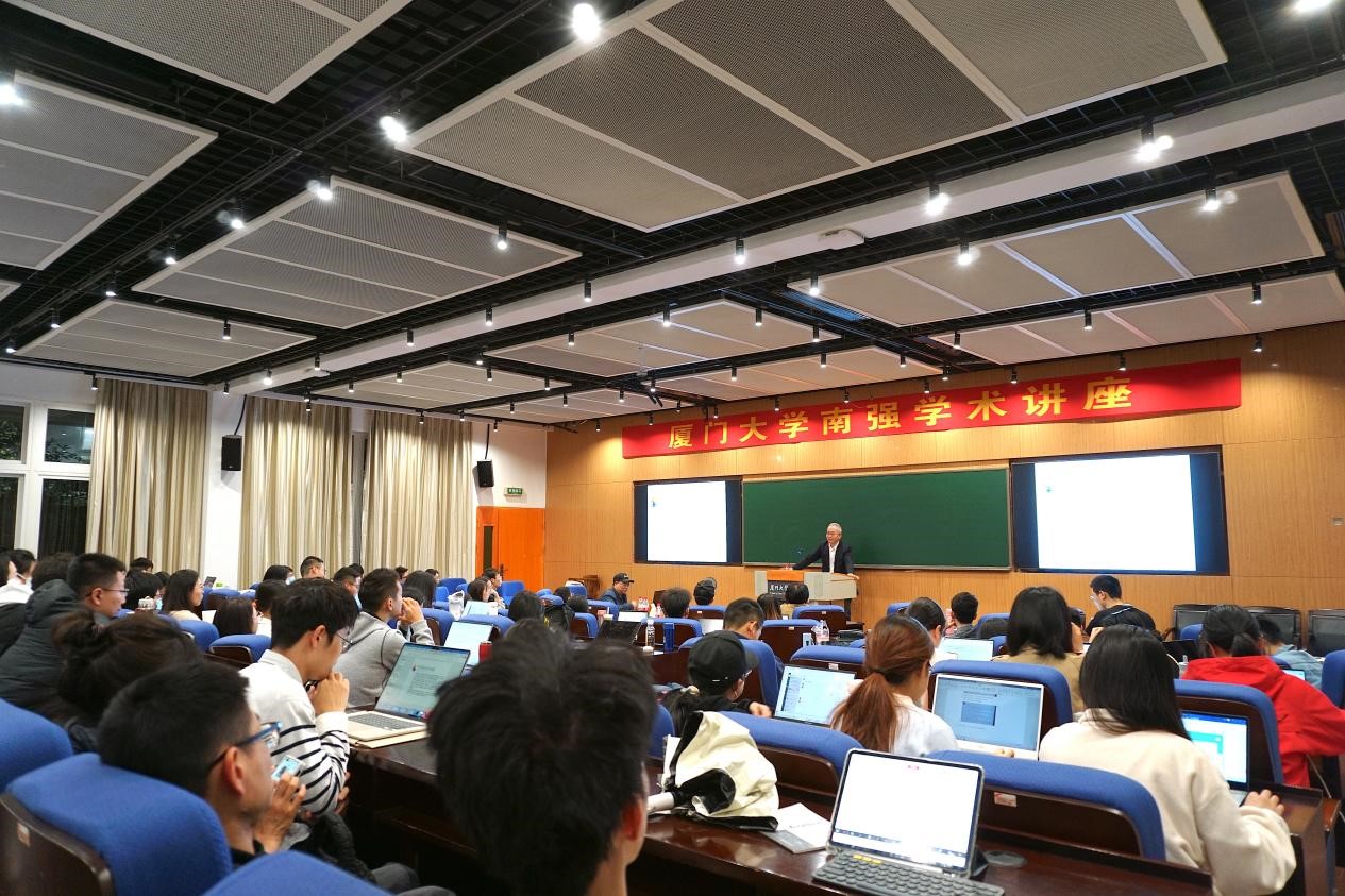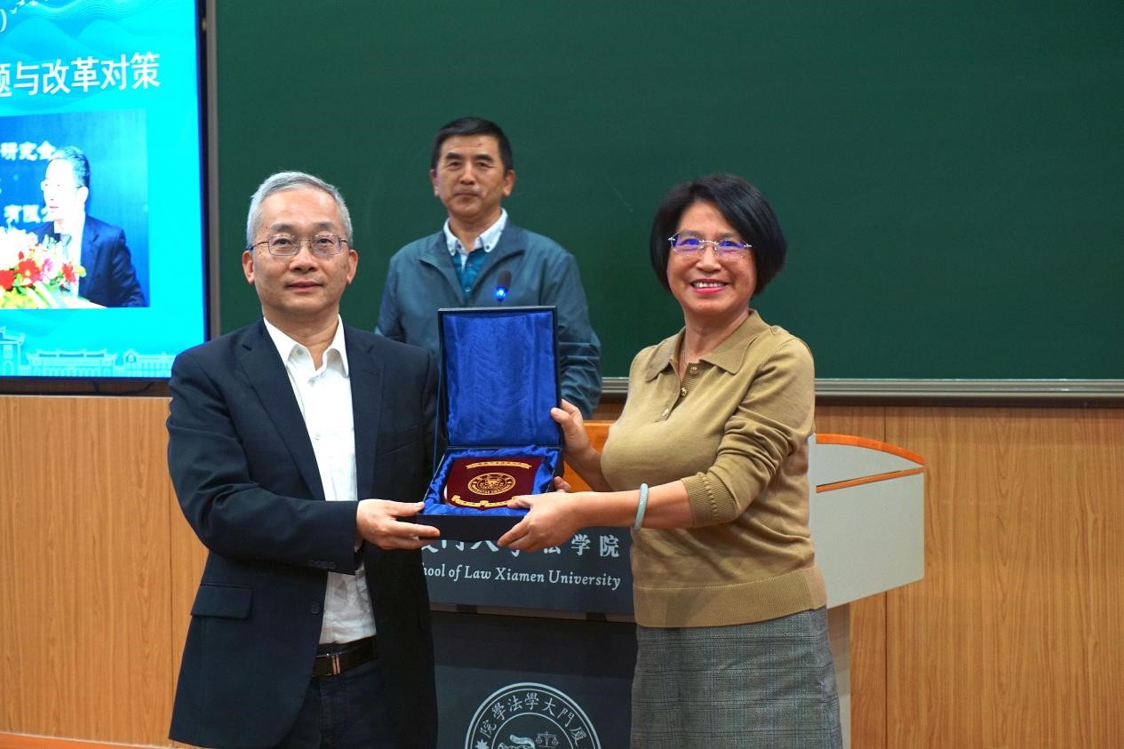 肖伟教授首先对郭锋教授的到来表示热烈欢迎,并向与会师生和嘉宾对郭锋会长作了简要介绍,高度赞扬了郭锋教授作为我国资本市场法治研究先驱者的卓越贡献。何丽新书记代表厦门大学向郭锋教授授予了南强讲座纪念牌。本次讲座在热烈的掌声中开始。