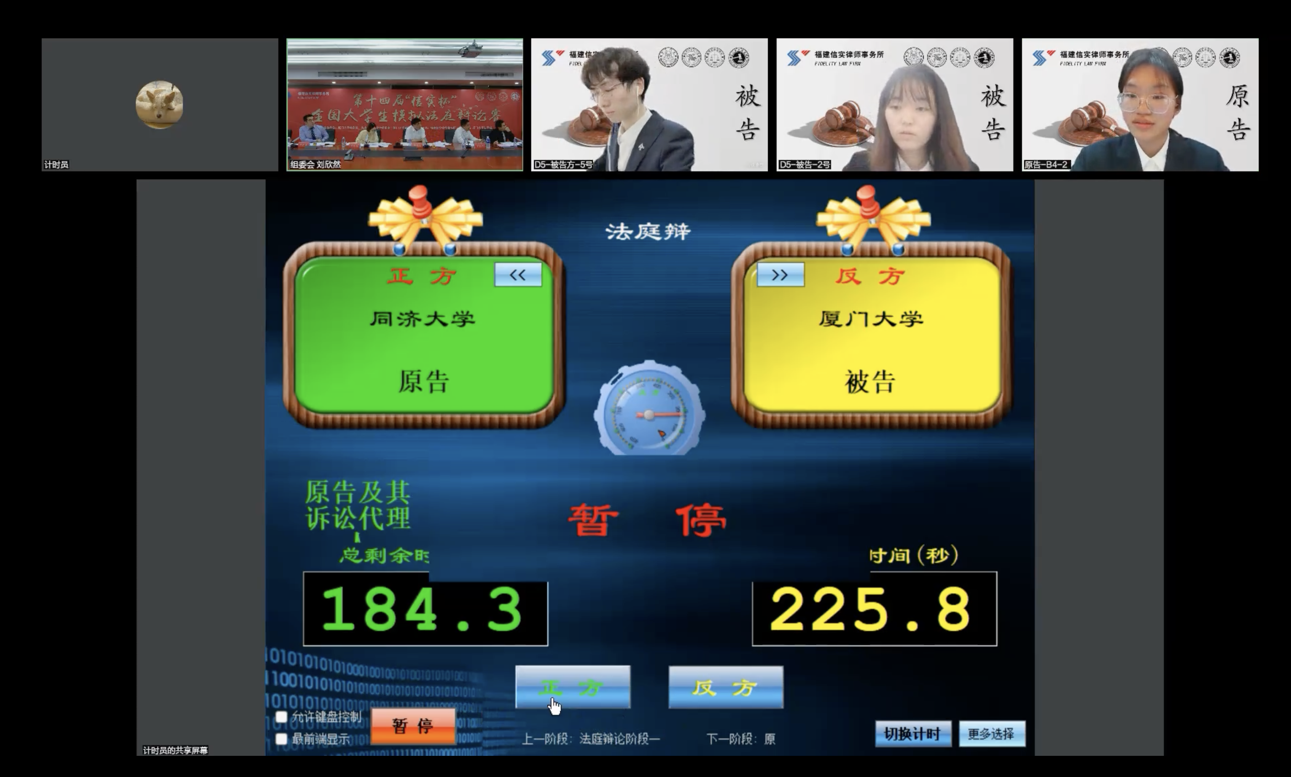 5月20日至22日,第十四届“信实杯”全国大学生模拟法庭辩论赛以线上线下相结合的方式举办。本次大赛由厦门大学教务处、共青团厦门大学委员会、厦门大学法学院主办,福建信实律师事务所联合主办,厦门大学法学社承办。来自全国26所法学院校的参赛队伍齐聚云端,分别以原告方、被告方的身份进行激烈的模拟法庭辩论。最终,同济大学代表队和厦门大学代表队脱颖而出,会师决赛。