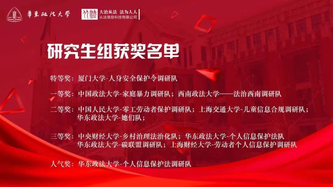 第二届“从法杯”全国大学生“法治中国”调研大赛总决赛于2022年10月29日圆满落幕。厦门大学法学院代表队在决赛中表现亮眼,斩获研究生组特等奖(最高奖)。