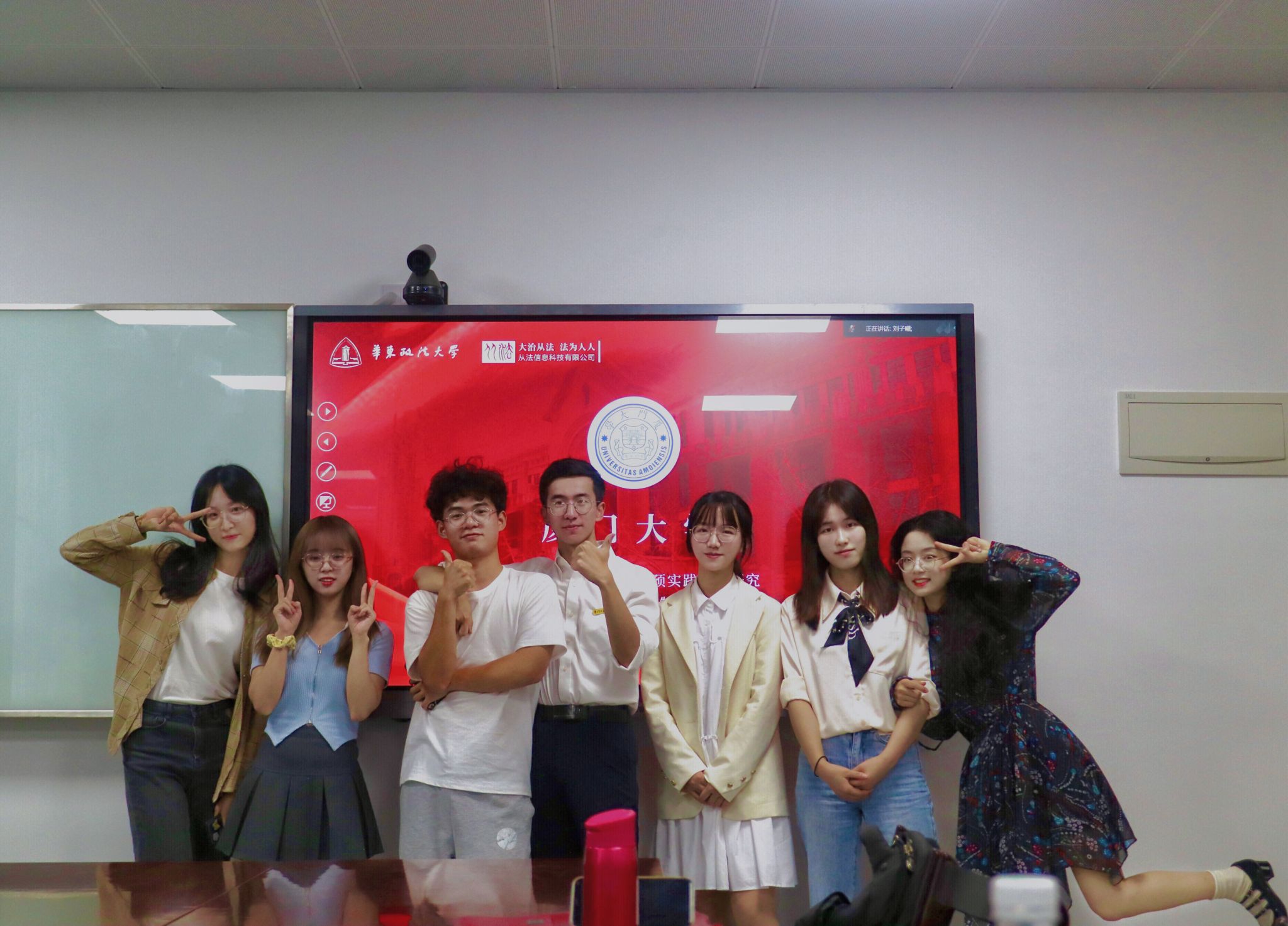 决赛阶段,团队成员李恩民、童谣代表课题组在主会场进行线上答辩,其他成员在分会场进行决赛支持工作,团队成员分工明确、准备充分、讲解清晰、回应有力,展现了厦大学子昂扬向上的精神风貌和严谨踏实的学术风范,用自身行动彰显我校“止于至善”的校训精神,赢得评委老师和线上观众们的肯定与赞扬。