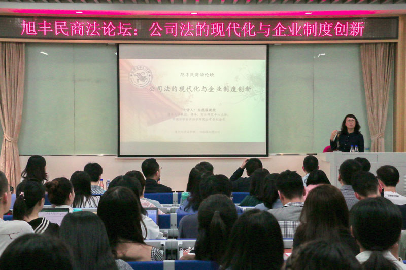 2018年10月22日晚18点50分,旭丰民商法论坛系列讲座:《公司法的现代化与企业制度创新》在我院B137教室顺利举办。法学院有幸邀请到了清华大学法学院朱慈蕴教授作为主讲人。朱慈蕴教授是全国顶尖的公司法专家、学者,是中国法学会商法研究会常务副会长、清华大学法学院教授、博士生导师,同时兼任清华大学商法研究中心主任。