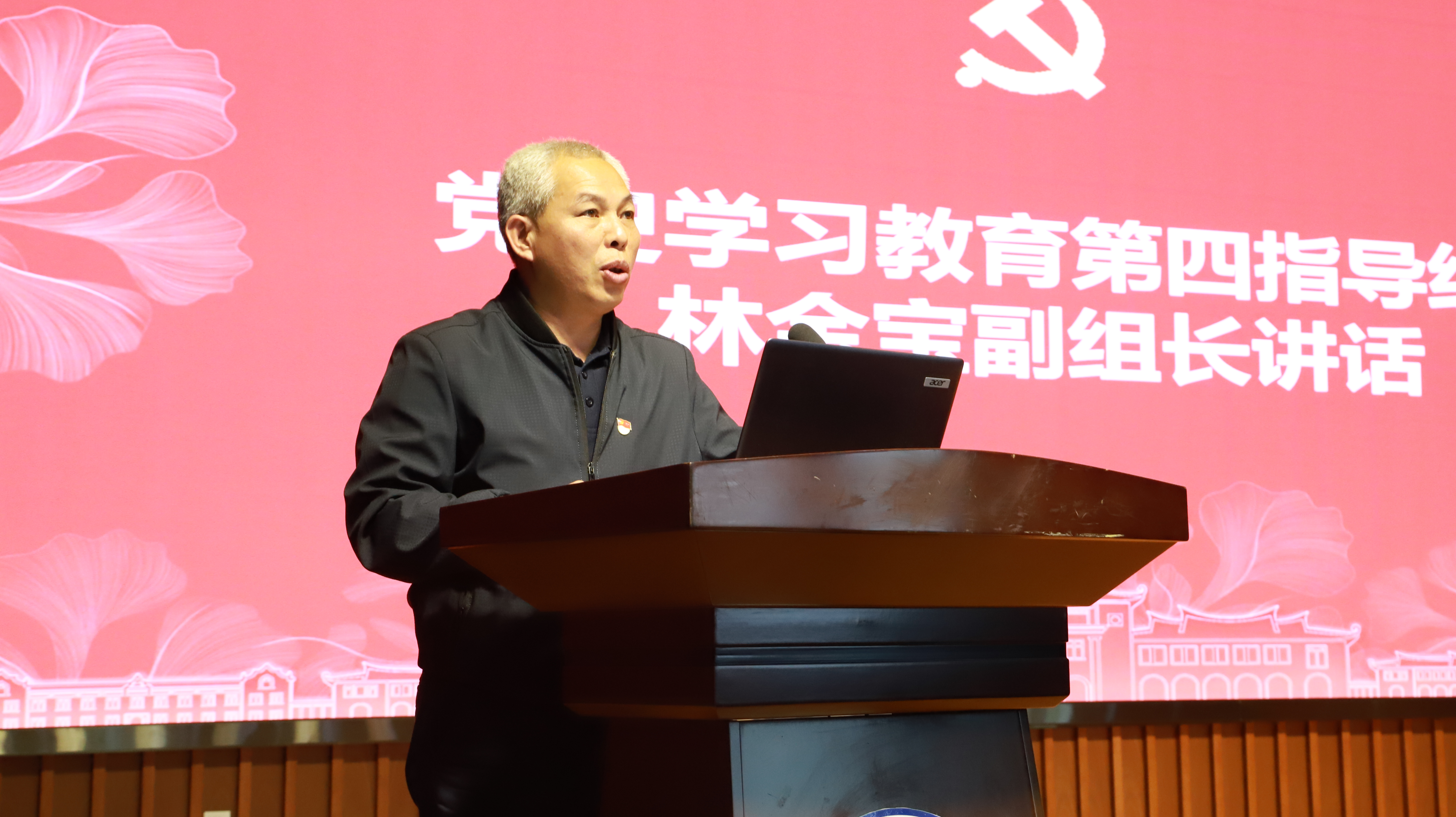 林金宝代表校党史学习教育第四指导组提出三点要求。一是要提高政治站位,深化思想认识,切实增强开展好党史学习教育的责任感和使命感;二是要坚持目标导向,突出重点任务,确保党史学习教育取得实实在在的成效;三是要强化主体责任,认真组织领导,以严的作风保障党史学习教育顺利开展。