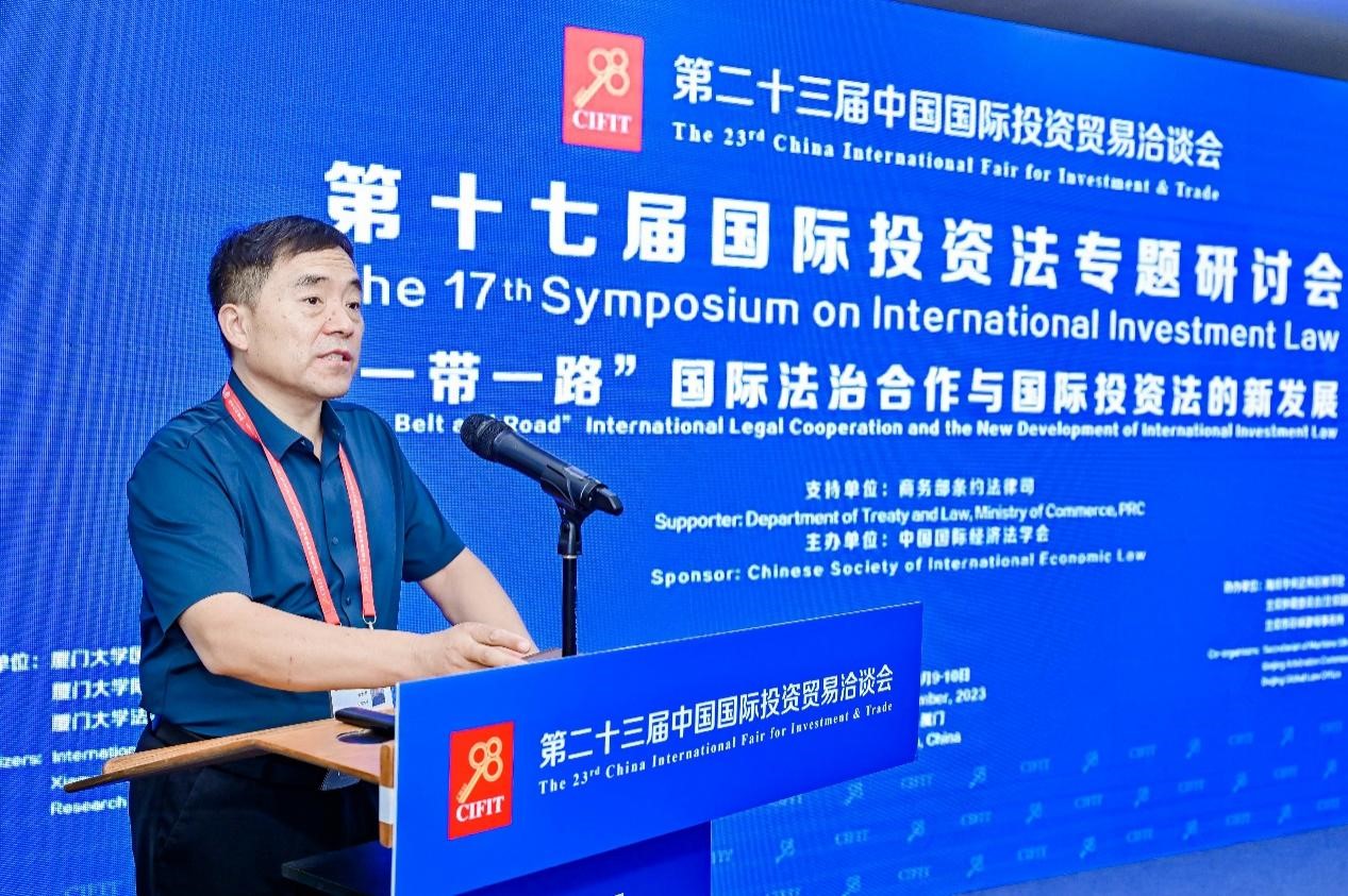 2023年9月9日至9月10日,作为第二十三届中国国际投资贸易洽谈会重要配套论坛之一,第十七届国际投资法专题研讨会于厦门国际会展中心举办。本届研讨会由商务部条约法律司支持,中国国际经济法学会主办,厦门大学国际经济法研究所、厦门大学陈安国际法学发展基金会及厦门大学法学院国际投资争议解决研究中心承办,海丝中央法务区秘书处、北京仲裁委员会/北京国际仲裁中心以及北京市环球律师事务所协办。本届研讨会以“‘一带一路’国际法治合作与国际投资法的新发展”为主题,邀请学术界、实务界及政府相关部门的专家学者围绕“‘一带一路’国际投资的法律保护问题”“中国-拉美国家之间投资条约实践的新发展”“气候变化政策与‘可持续发展’国际投资规则的创新”“国际投资争端调解机制的新发展”“涉华投资典型案例研究”五个议题展开深入研讨。