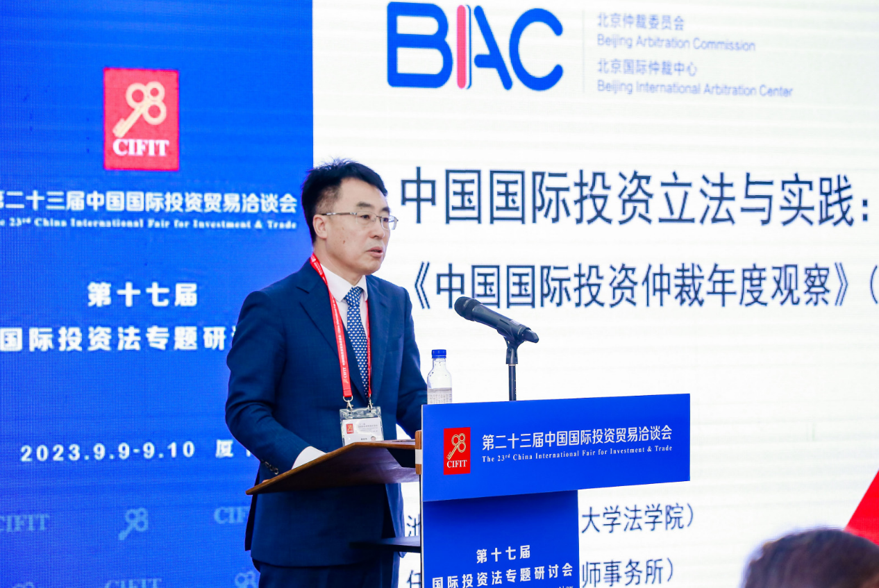 2023年9月9日下午,北京仲裁委员会/北京国际仲裁中心陈福勇副秘书长主持召开《中国国际投资仲裁年度观察(2023)》发布会。《年度观察》撰稿人池漫郊教授和任清律师从中国缔结投资协定的最新实践、中国参与投资争端解决的最新实践、中国在外商投资领域的重要立法活动、中国国内与投资争端有关的争议解决、中国与ISDS改革以及中国仲裁机构、仲裁员和律师参与投资仲裁情况等方面,向现场参会人员发布了《年度观察》的主要内容。中国法学会航空法学研究会会长、中国东方航空集团有限公司总法律顾问、首席合规官郭俊秀先生和厦门大学国际经济法研究所所长陈辉萍教授对《年度观察》进行了精彩点评。