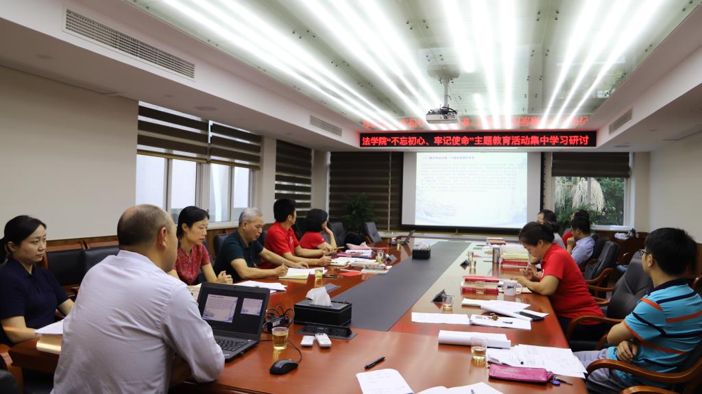 9月26日下午,法学院党政领导班子“不忘初心、牢记使命”主题教育集中学习研讨第一专题的学习在法学院B220会议室拉开序幕。