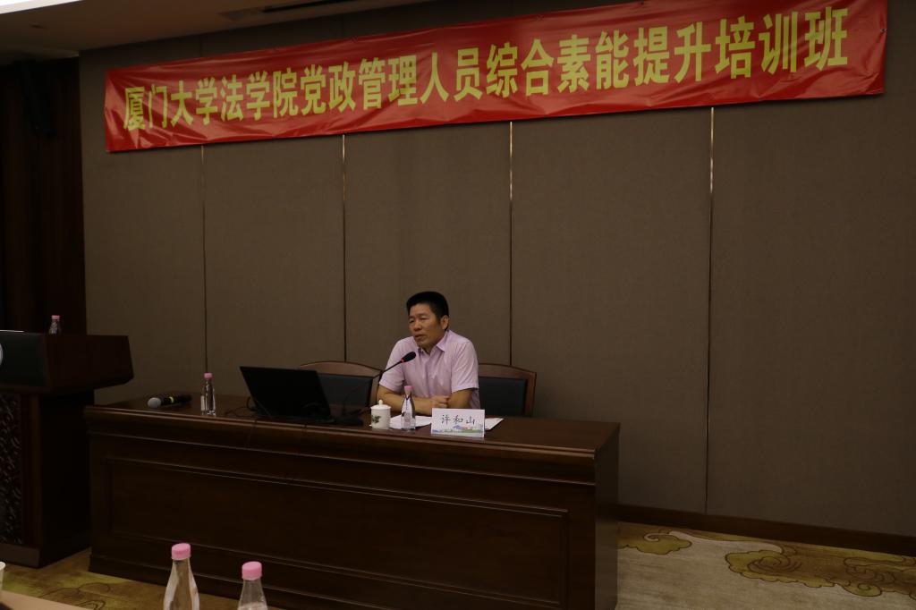 为培养造就忠诚干净担当的高素质专业化干部队伍,推动以习近平新时代中国特色社会主义思想为中心内容的理论教育更加深入、党性教育更加扎实、专业化能力培训更加精准、知识培训更加有效。进一步提升法学院党政管理人员综合素能,改进工作作风,提高服务效率,加强学院党政管理人员队伍建设。9月7日至8日,法学院党政管理人员综合素能提升培训班在翔安校区举办,法学院全体党政管理人员参加培训。开班仪式由法学院党委副书记、党校副校长郭锦星主持。
