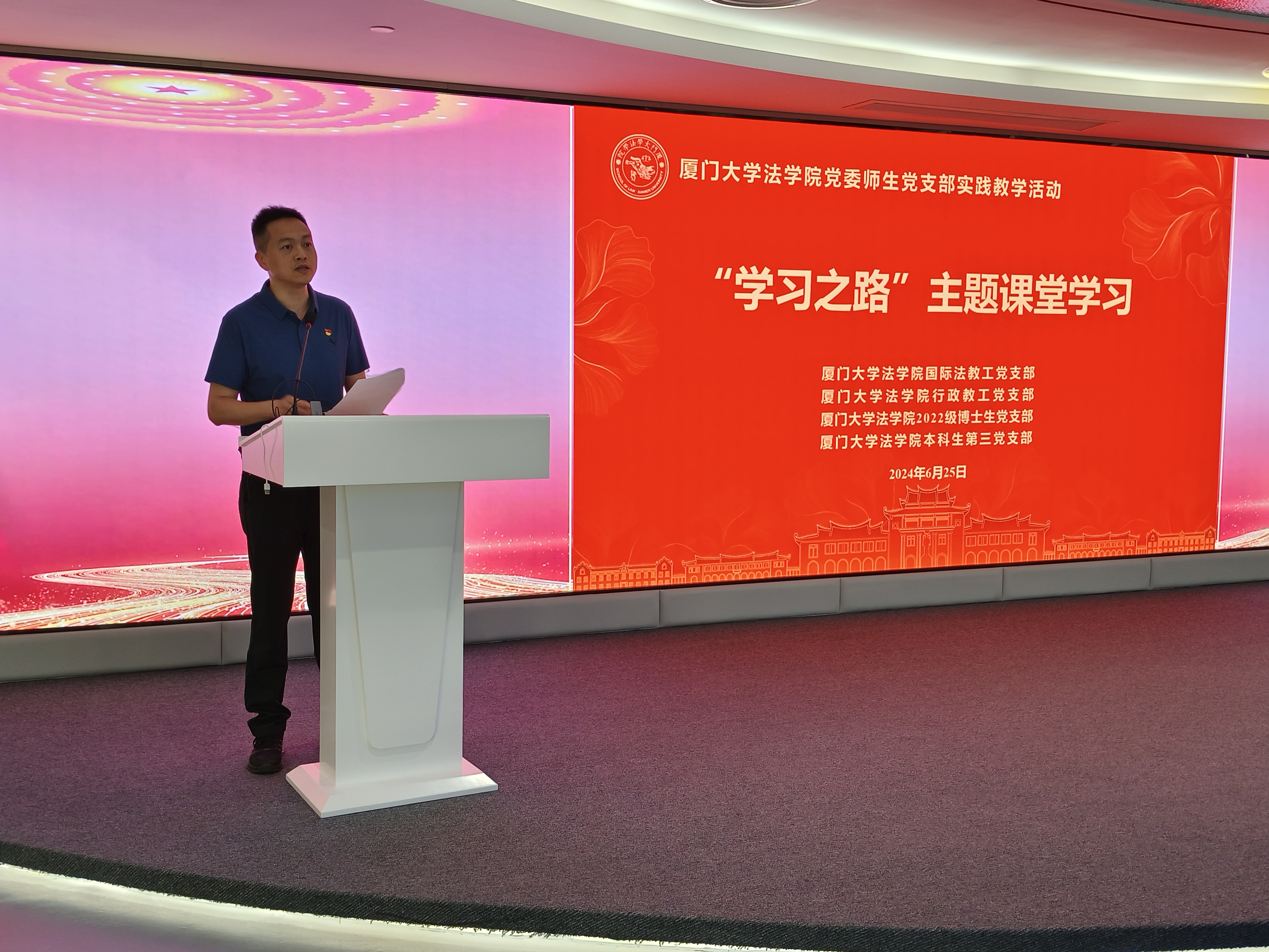 为巩固拓展学习贯彻习近平新时代中国特色社会主义思想主题教育成果,深刻领悟习近平同志在厦门工作期间留下的宝贵思想财富、精神财富和实践成果,6月25日下午,法学院党委组织国际法教工党支部、行政教工党支部、2022级博士生党支部、本科生第三党支部的师生党员赴厦门市委党校“学习之路”主题课堂开展“追寻领袖足迹,感悟思想伟力”实践教学活动。