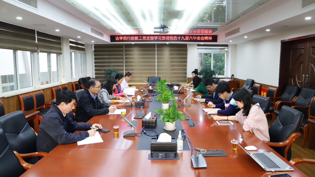 11月12日下午,法学院行政教工党支部在220会议室开展党的十九届六中全会精神专题学习。