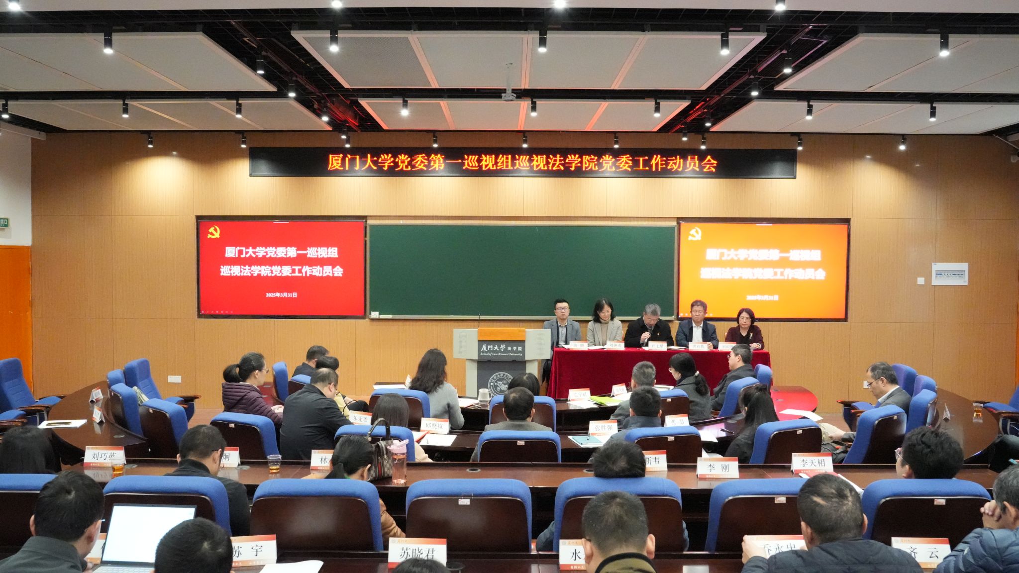 根据校党委统一部署和安排,3月31日上午,校党委第一巡视组巡视法学院党委工作动员会在B138报告厅召开。校党委巡视办主任洪真裁,第一巡视组组长邱七星、副组长刘钟南等巡视组全体成员,法学院领导班子成员、科级干部、党支部书记及教职工代表等参加会议。会议由法学院党委书记何丽新主持。