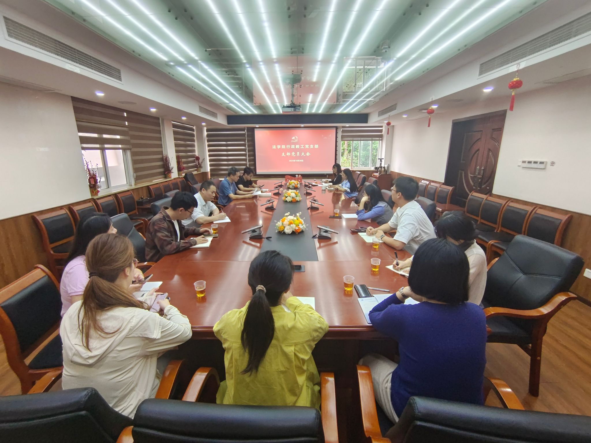 10月30日上午,法学院行政教工党支部以“深学治国理政思想,践行教育强国使命”为主题召开专题研讨会议,围绕《习近平谈治国理政》第五卷、师生党员第三次集中大课“教育强国”核心内容展开深入研讨。会议由法学院党委副书记、行政教工党支部书记张宇斌主持。