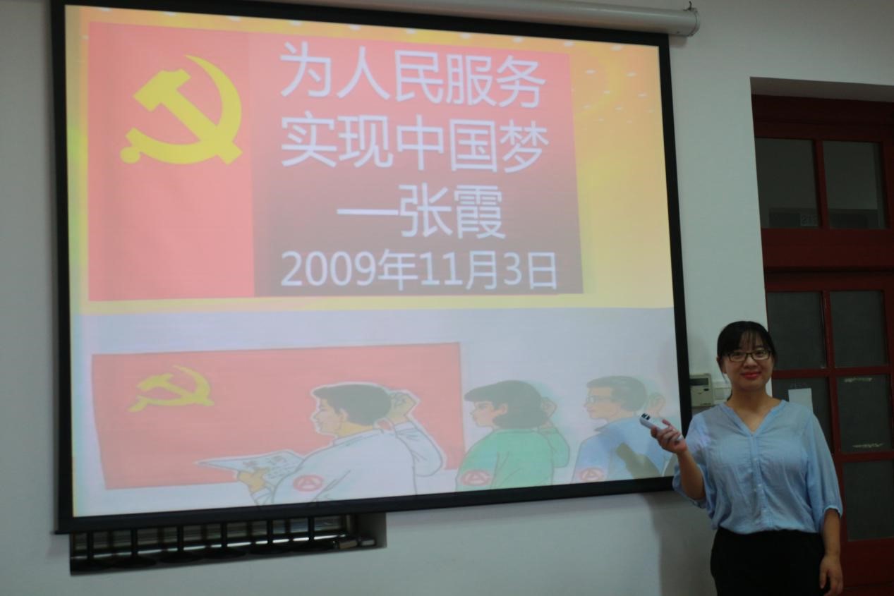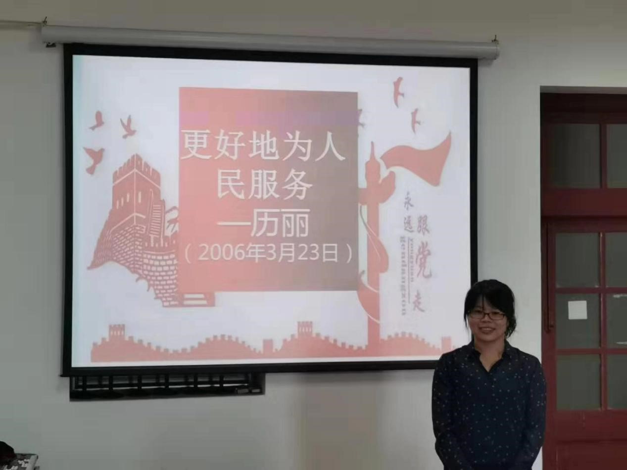 最后发言的是张霞老师。张老师分享的入党初衷是“为人民服务,实现中国梦”。她回忆说,记得提交入党申请书是在大二的时候,说实话当时对党的理论学习尚显不足,但当时模糊地认为,入党是一件光荣的事、班级里各方面表现优异的少数同学才有资格申请,于是下决心向优秀党组织的高标准靠拢。一转眼入党已经十年了,现在重温当初的入党初衷,多了一份深刻、少了一些懵懂,多了一份责任、少了一份青涩。无论何时,作为一名共产党员,必须坚定增强“四个意识”、做到“两个维护”,始终坚守为人民服务的理想信念,为中国梦的实现保驾护航。