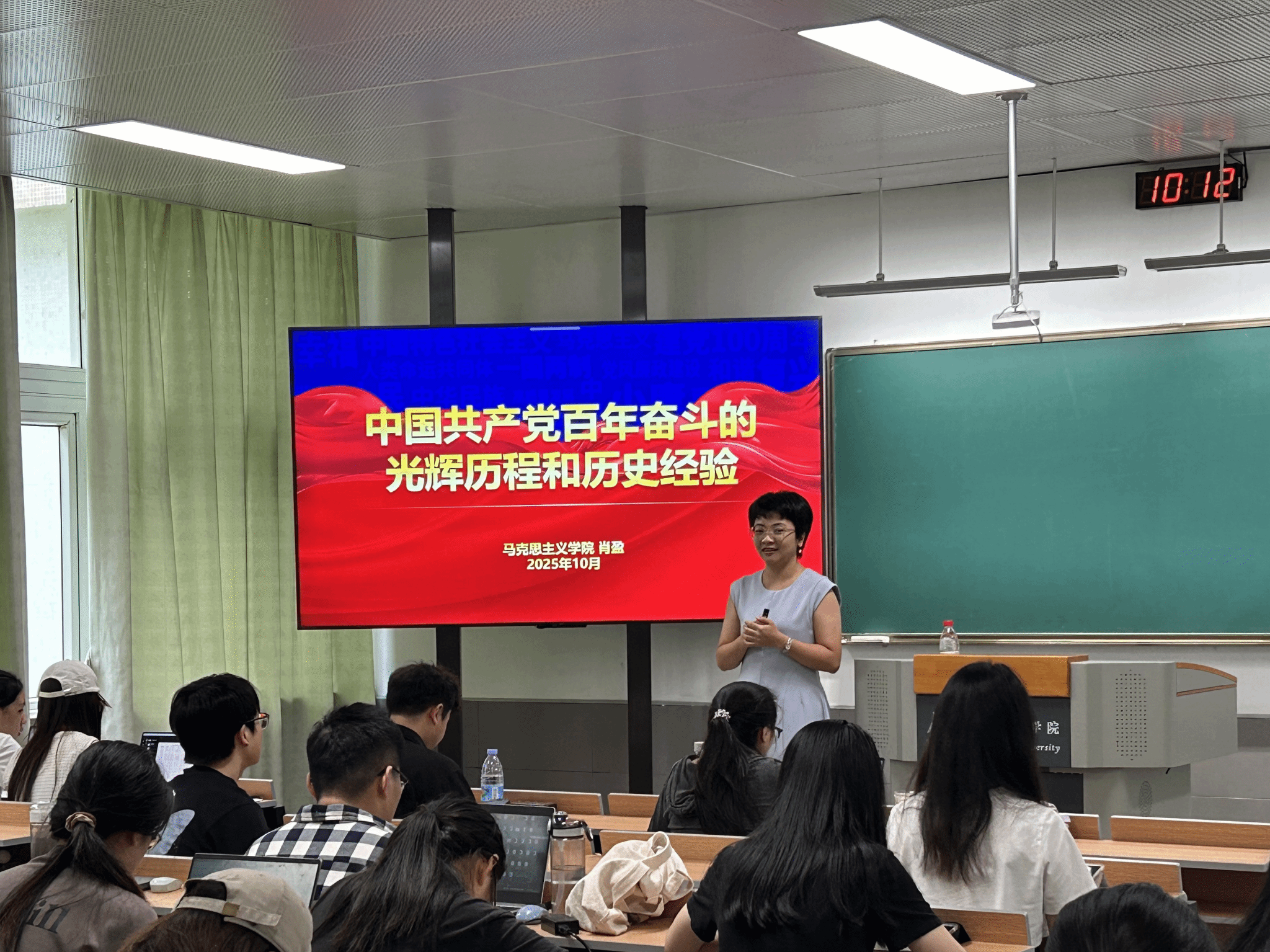 马克思主义学院副教授肖盈讲授《中国共产党百年奋斗的光辉历程和历史经验》专题党课。肖老师回顾了中国共产党百年奋斗的光辉历程与历史经验,号召学员们接过历史的接力棒,将个人成长与国家发展紧密结合。