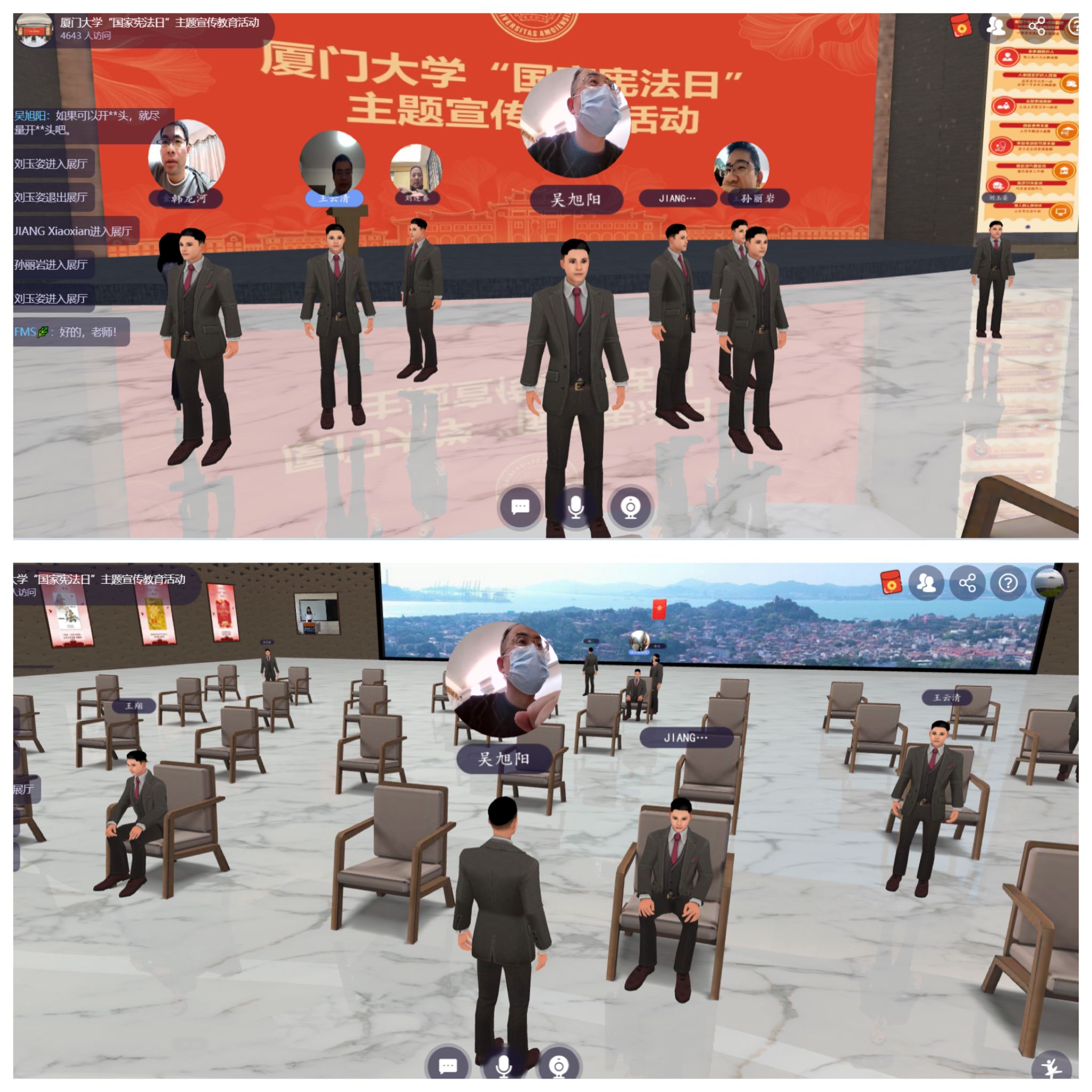 活动由厦门大学法学院法理法史宪行教工党支部书记吴旭阳老师组织策划,厦门大学法学院法理学、法律史、宪法与行政法等教研室的党员教师共同参与。党员教师们参观了厦门大学校办的“厦门大学‘国家宪法日’主题宣传教育活动”元宇宙展馆,并在元宇宙中打开音频和摄像头,交流、分享了学习习近平总书记文章精神的体会。这种新技术模式,在疫情防控无法线下面对面交流的情况下,能够让党员同志以三维立体式线上参与,沉浸式地进行分享交流,进一步推动了对宪法的学习,增强了尊崇、遵守、维护宪法的意识,促进了宪法精神和社会主义法治精神的培育和弘扬。