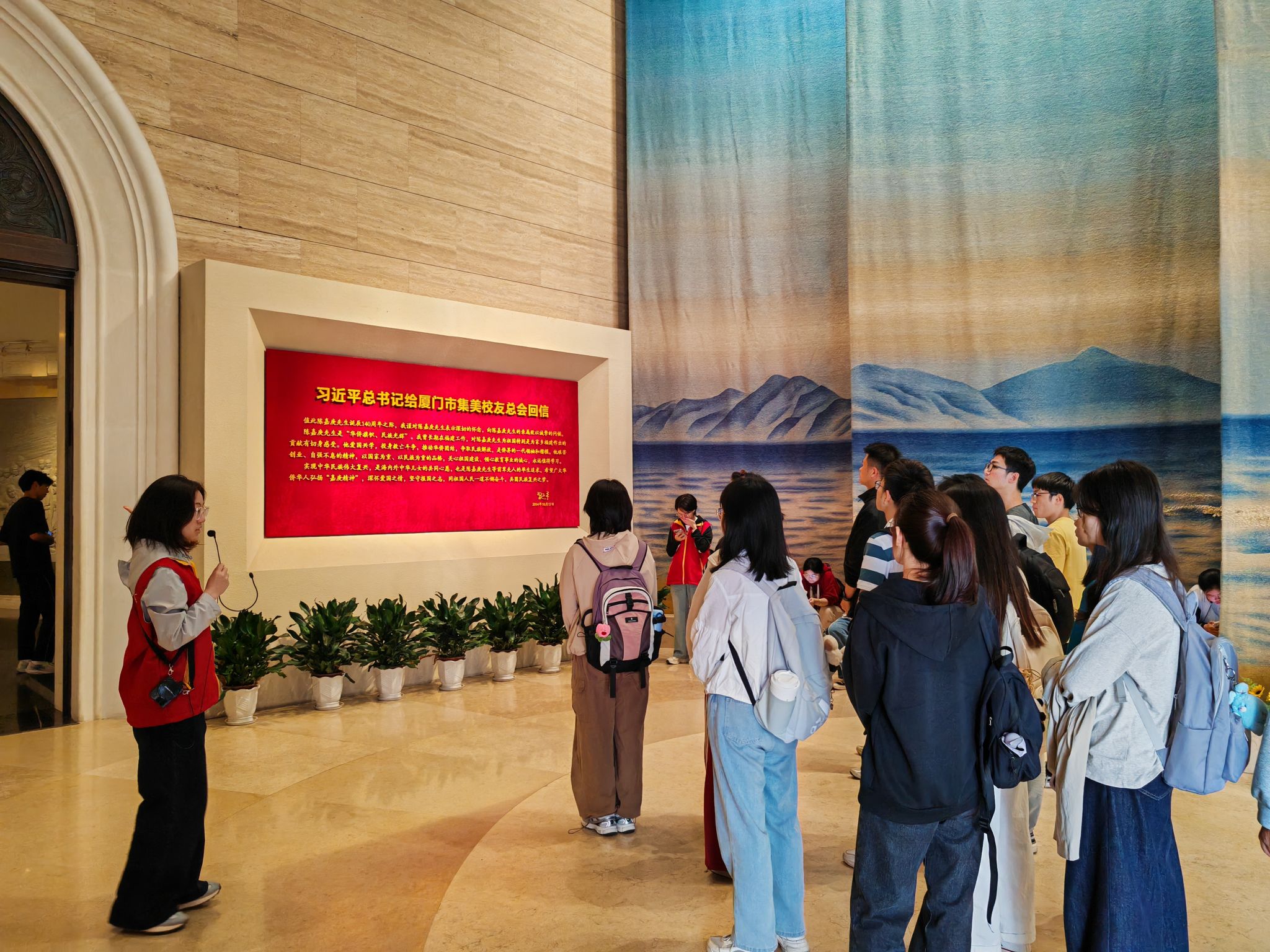 同学们首先参观了“华侨旗帜 民族光辉——陈嘉庚生平陈列”展区。这里通过大量珍贵的照片、实物以及精心复原的场景,生动展现了陈嘉庚先生从艰苦创业、兴办教育,到积极投身新中国建设的伟大历程。陈嘉庚先生在事业取得成功后,始终心怀祖国和家乡,“宁可变卖大厦,也要支持厦大”的故事让大家深受触动。