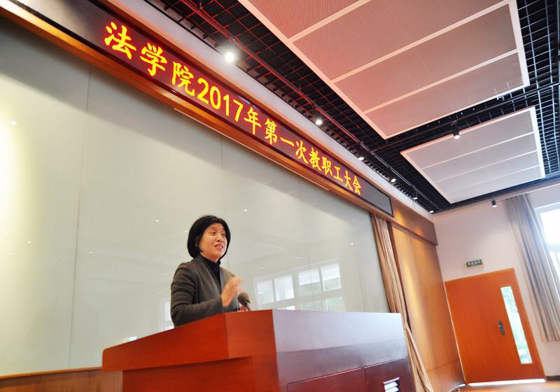 3月2日下午,法学院2017年第一次全院教职工大会在138会议室召开。法学院党委书记李智勇,院长宋方青共同主持会议,法学院全体教职工参加会议。