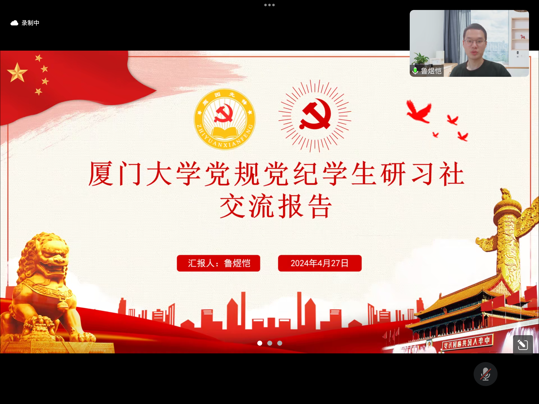 与会人员首先观看了厦门大学首届“十佳党建品牌”之一——法学院党委“廌园先锋”党建品牌的风采展示视频,厦门大学党规党纪学生研习社社长鲁煜恺分享了研习社在党规党纪研习方面的经验做法和未来规划。