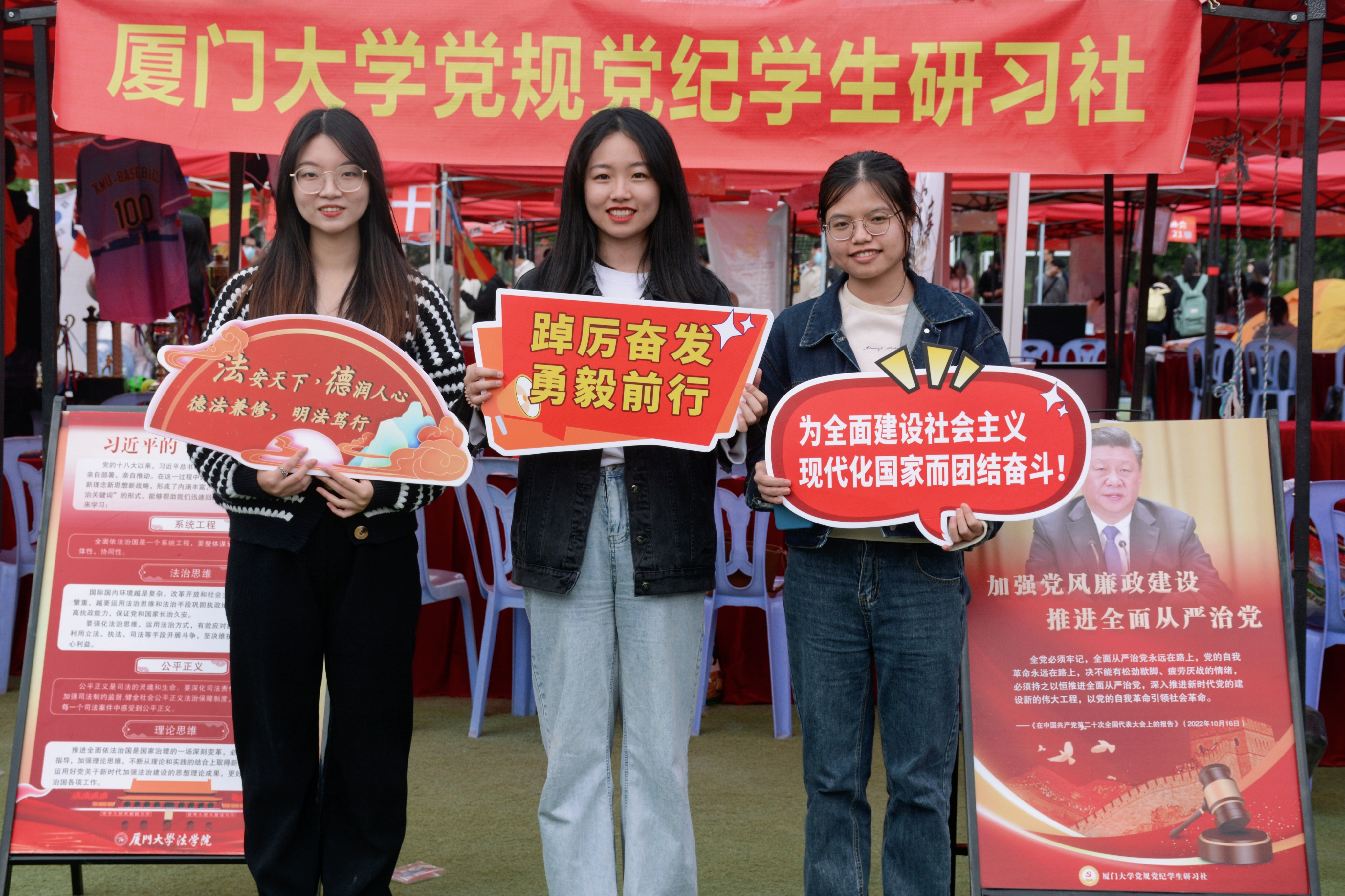 吹响“廉”宣传号角,奏响廉洁强音。在党规党纪教育中,研习社不仅注重坚持理论与实践结合,也同样注重对法治文化和廉洁文化的宣传。通过社团文化节、品牌展示等活动,以丰富的图文影像资料呈现研习社的理论与实践成果。在厦门大学首届“十佳党建品牌”现场展评活动中,研习社被评为厦门大学首届“十佳党建品牌”。