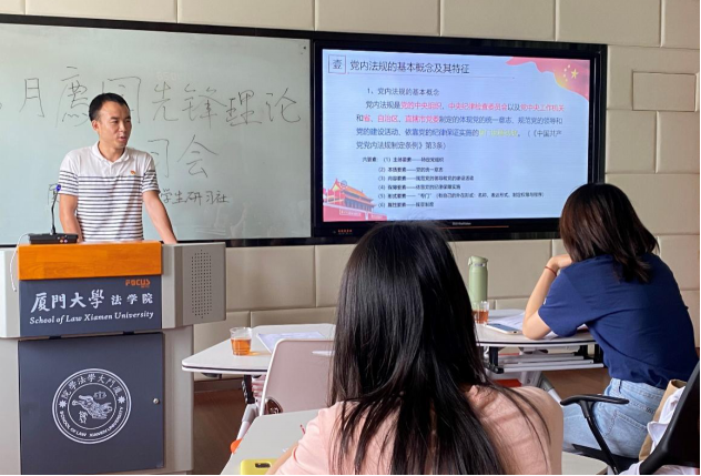 为更好地开展党史学习教育,夯实基层党建根基,强化“尊崇党章、认知党史”的学习理念,5月27日下午,厦门大学党规党纪学生研习社于法学院B522多媒体教室举行5月廌园先锋理论学习会。