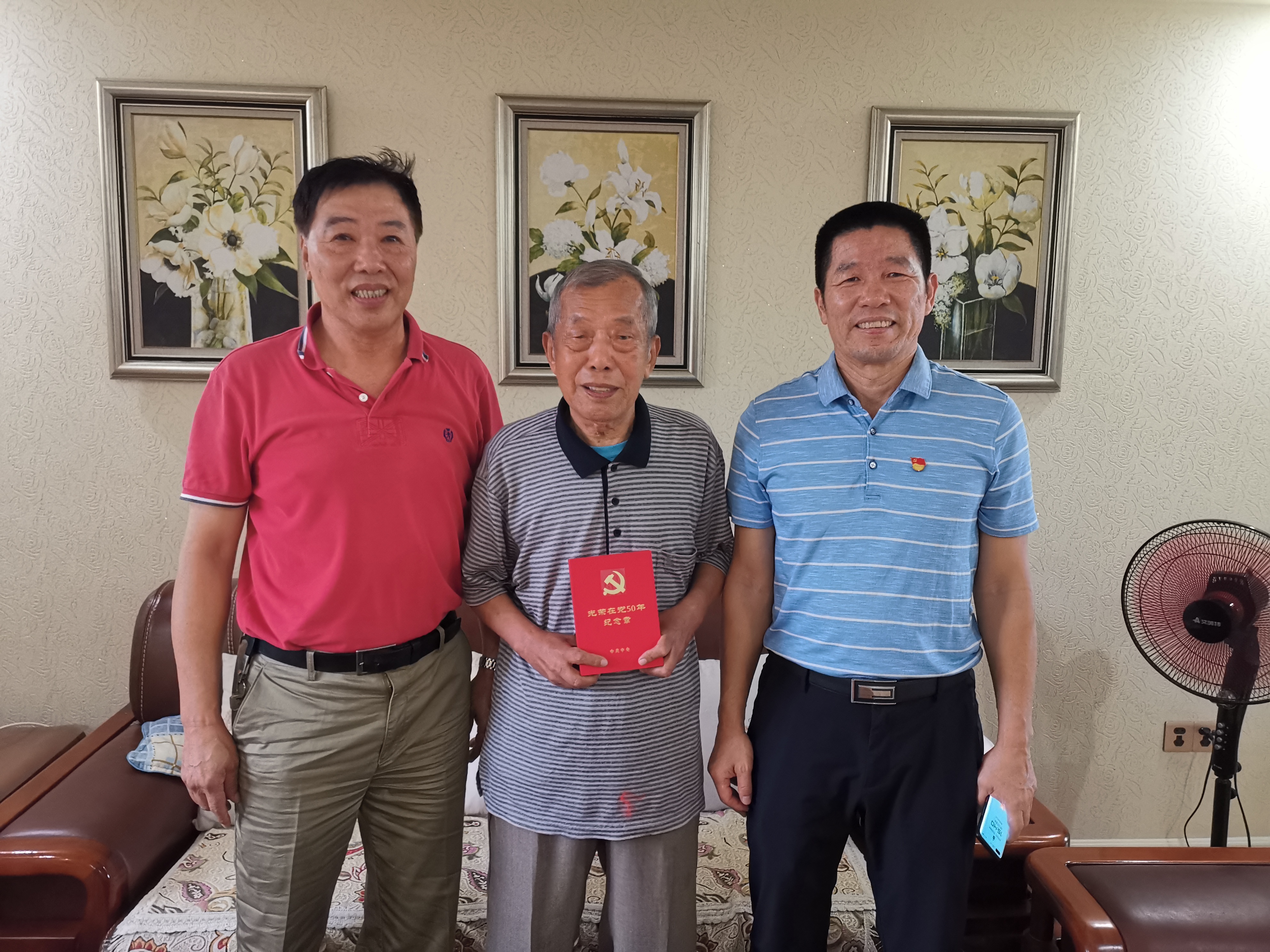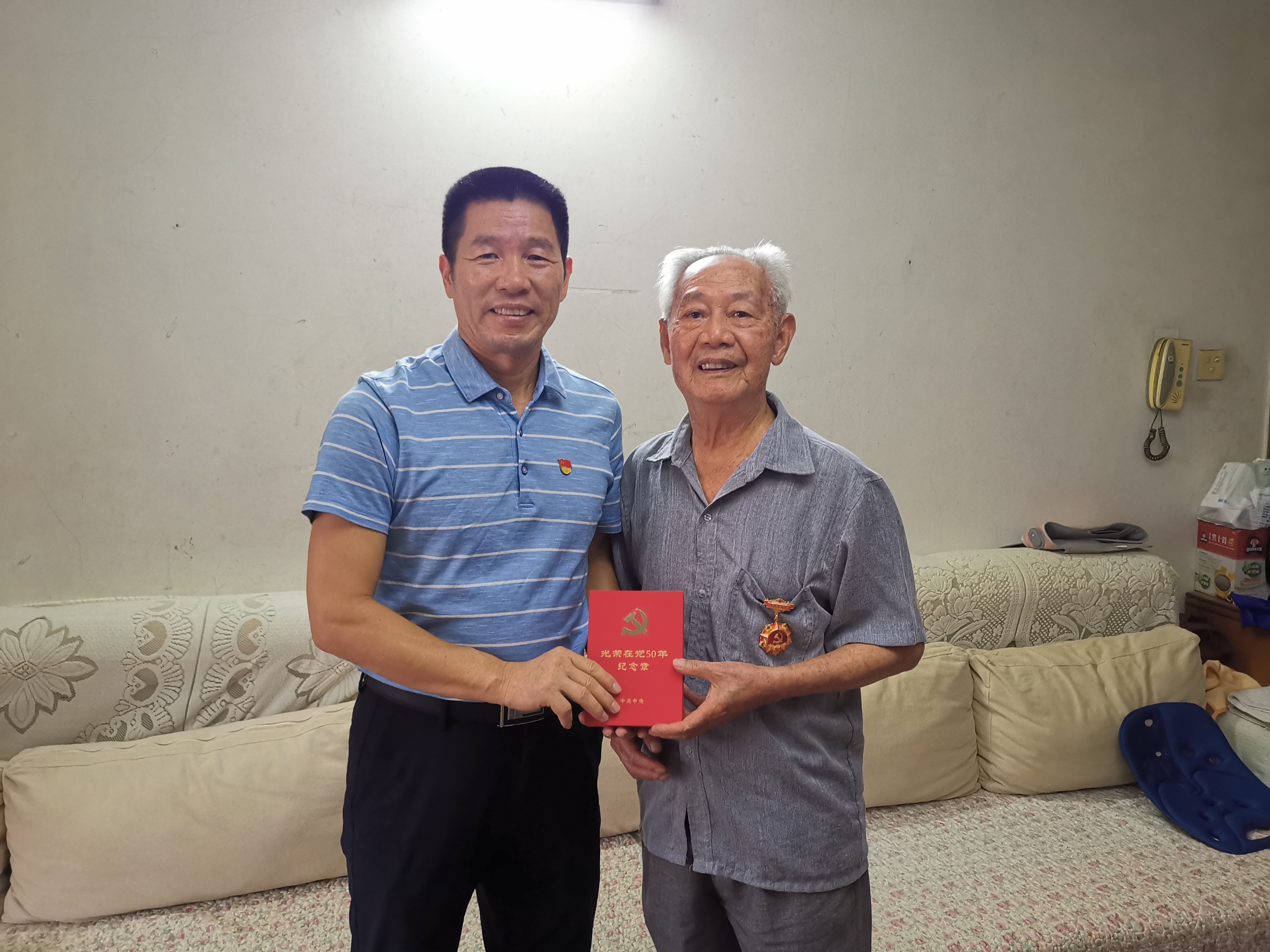为庆祝中国共产党成立一百周年,大力弘扬老党员的光荣传统和优良品格,院党委书记许和山走访了法学院3名党龄超过50年的老党员,向他们颁发“光荣在党50年”纪念章,并向他们致以热烈的祝贺和崇高的敬意。