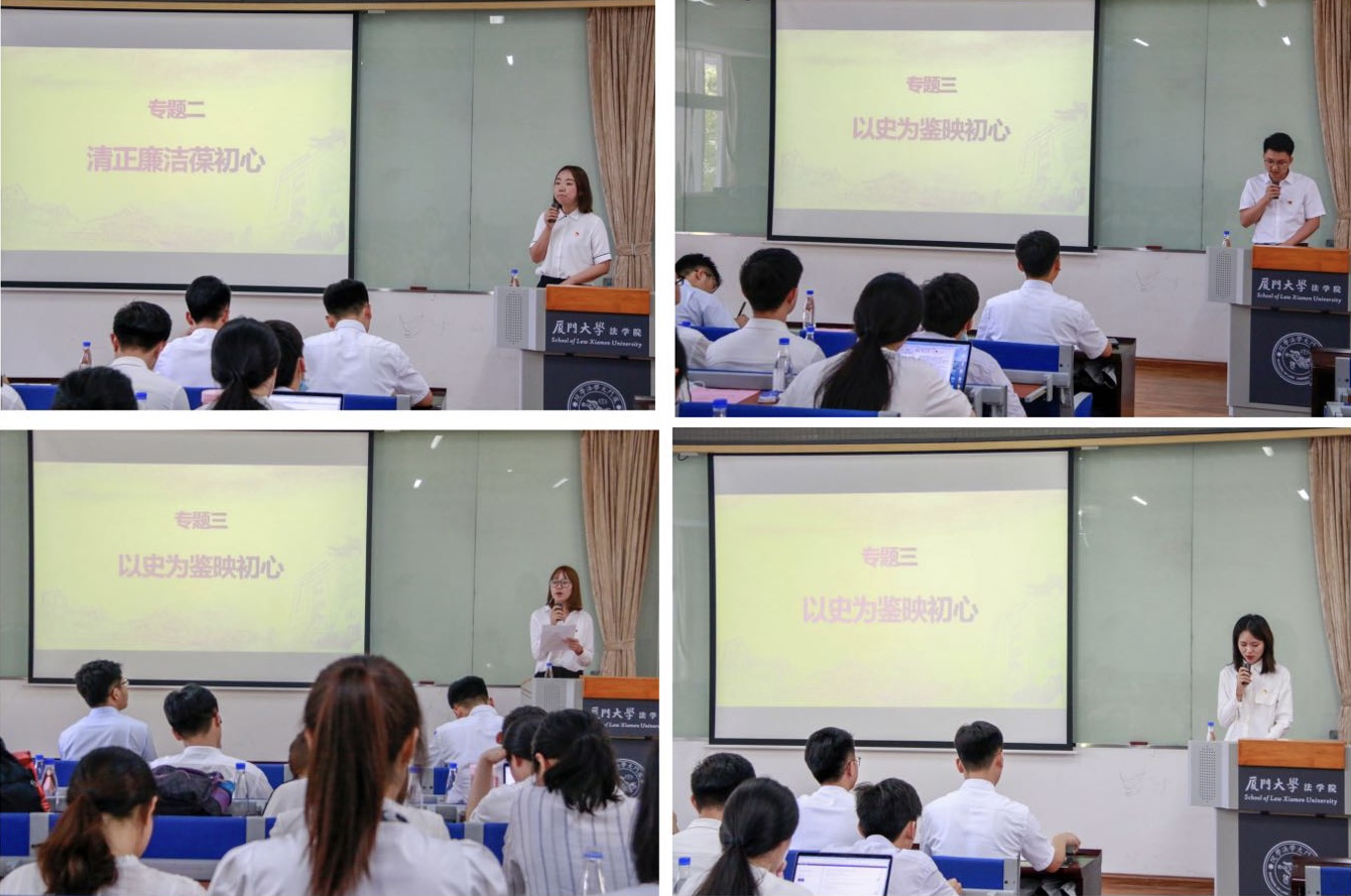 学党史悟初心,筑防线守廉洁。为进一步加强党风廉政教育,把党风廉政建设贯穿于思想政治教育始终,全面提升毕业生的廉洁自律意识和法治观念,自觉筑牢抗腐防变的防线,5月21日上午,法学院以党史学习教育为契机,组织毕业生代表、厦门大学党规党纪学生研习社成员成立廉政学习小组,开展“观廉展、悟廉心、践廉行”主题教育。