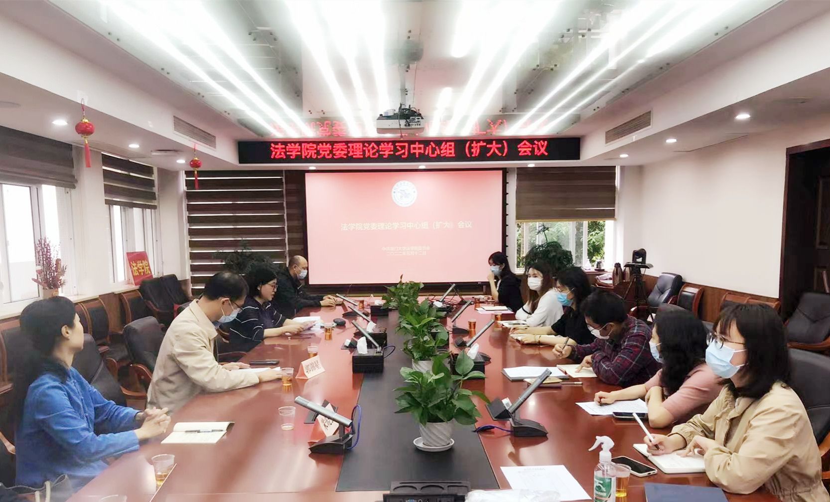 5月12日上午,法学院召开党委理论学习中心组(扩大)会议,深入学习5月5日中共中央政治局常委会会议精神和习近平总书记在庆祝中国共产主义青年团成立100周年大会上的重要讲话精神,贯彻落实学校基层党委(党总支)书记工作专题会议要求,研究部署相关工作。院长宋方青主持会议并进行领学。