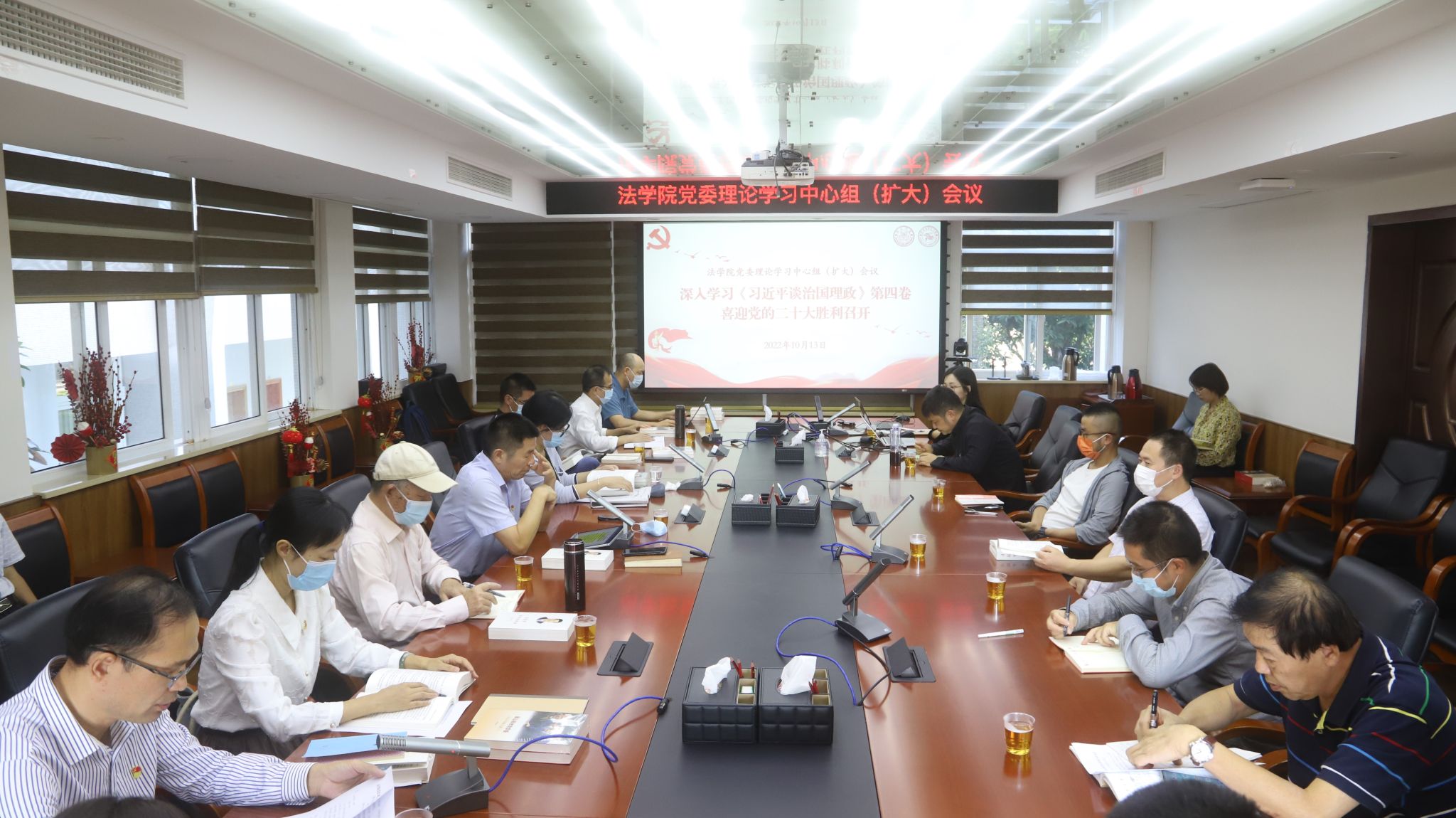 为进一步凝聚思想共识,以更加昂扬的精神状态和奋斗姿态迎接党的二十大胜利召开,10月13日下午,法学院党委理论学习中心组召开主题为“深入学习《习近平谈治国理政》第四卷 喜迎党的二十大胜利召开”的集中学习(扩大)研讨会。法学院党建联络员林永生出席指导,全体党委委员参加了本次研讨。会议由党委副书记郭锦星主持。