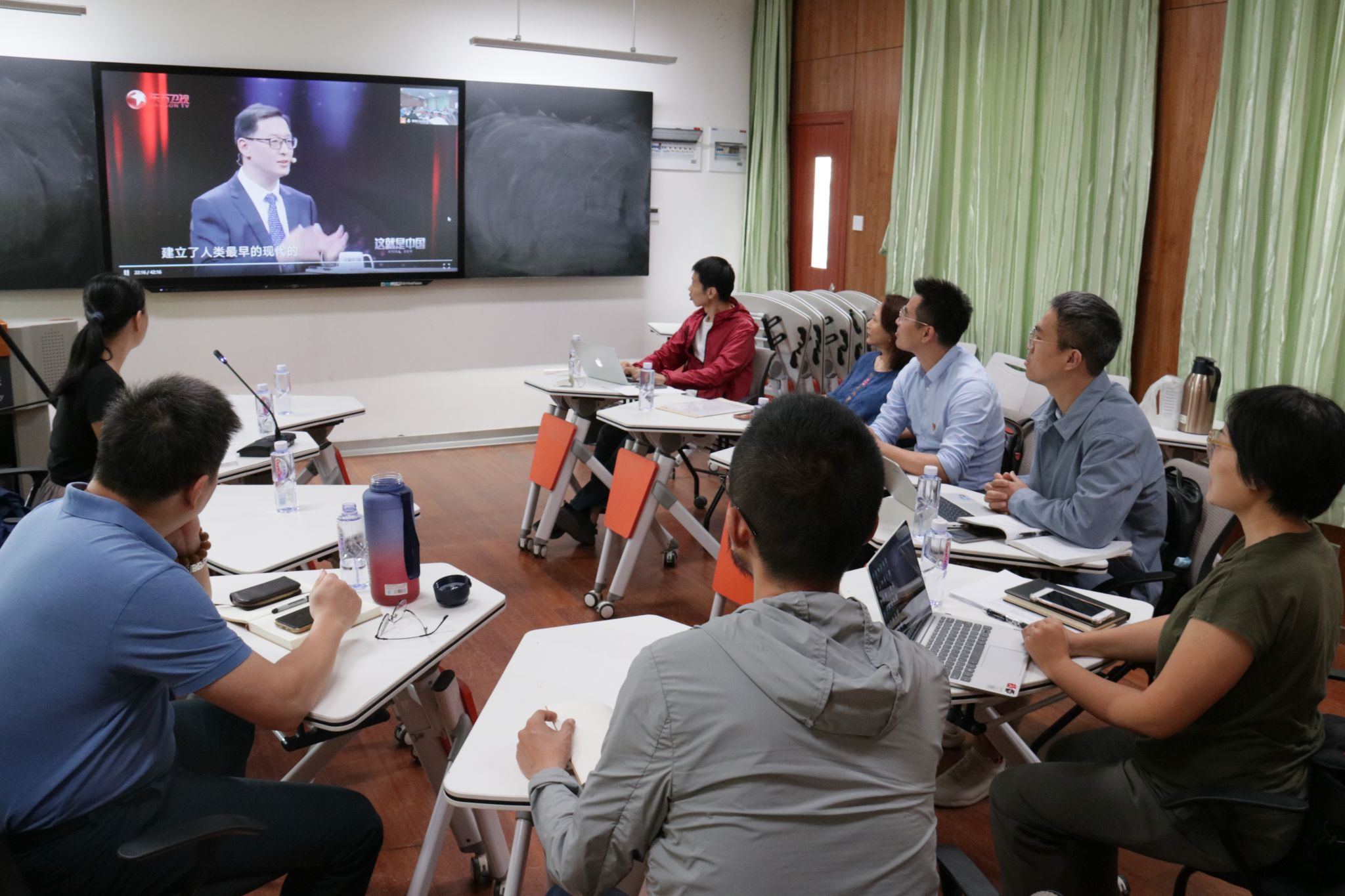 会议伊始,党支部书记董慧娟介绍了党的二十大召开的会议背景和重点内容,强调学习大会精神的重大意义。随后,全体参会人员集体观看学习了张维为教授在《这就是中国》节目中的演讲“中国式现代化内涵的理解与探讨”。张教授旁征博引世界多国政要、学者的观点,在对比所谓“西方式现代化”概念的基础上,阐述了“中国式现代化”的提出背景和应有内涵。他认为,“中国特色社会主义现代化”侧重中国国内现代化建设,而“中国式现代化”则立足全球视角,致力于将我国的制度和做法推向世界,为解决人类面临的共同问题提供方案。相较于西方少数人享有的重视物质的现代化,中国式现代化是以更多人享有的兼具物质文明和精神文明的现代化,是构建人类命运共同体的优解方案。