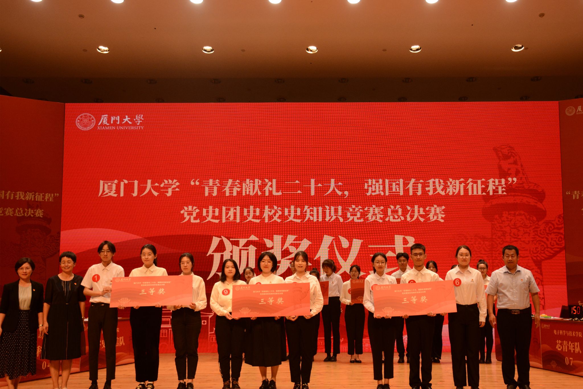 2022年5月29日晚,厦门大学“青春献礼二十大 强国有我新征程”党史团史校史知识竞赛总决赛在科学艺术中心音乐厅举行,法学院“爱党敬校尊法”队闯入决赛并斩获三等奖(第五名)的佳绩,法学院获评“优秀组织奖”。