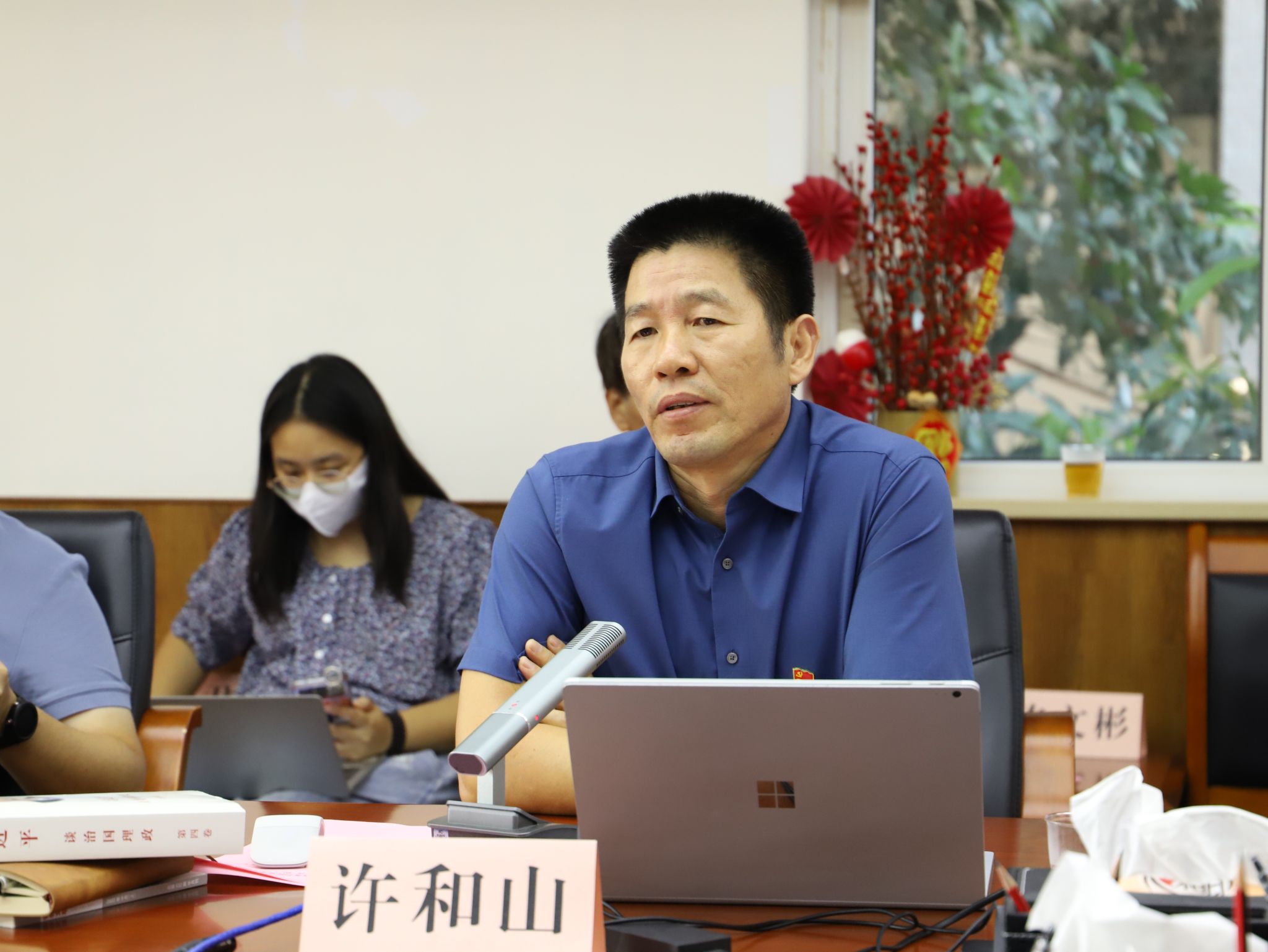 许和山强调,一流党建为一流学科发展指引方向,对于哲学社会科学而言,加强和改善党对哲学社会科学工作的领导,是繁荣发展我国哲学社会科学事业的根本保证。近年来,法学院党委探索出一条以一流党建引领一流事业高质量发展的新路,有效推进一流学院和一流学科建设。法学院持之以恒加强理论武装,扎实开展“不忘初心、牢记使命”主题教育、党史学习教育,坚持“以学促讲、以讲助学”,带动学院党政人员积极撰写理论文章,在中宣部党建网、中组部共产党员网、教育部高校思政网等国内主流媒体发表理论文章,夯实干事创业的理论根基。同时,法学院坚持将政治理论学习和专业学习有机融合,深入贯彻落实习近平法治思想,打造法学特色的理论学习模式,持续推进党建和事业发展深度融合。