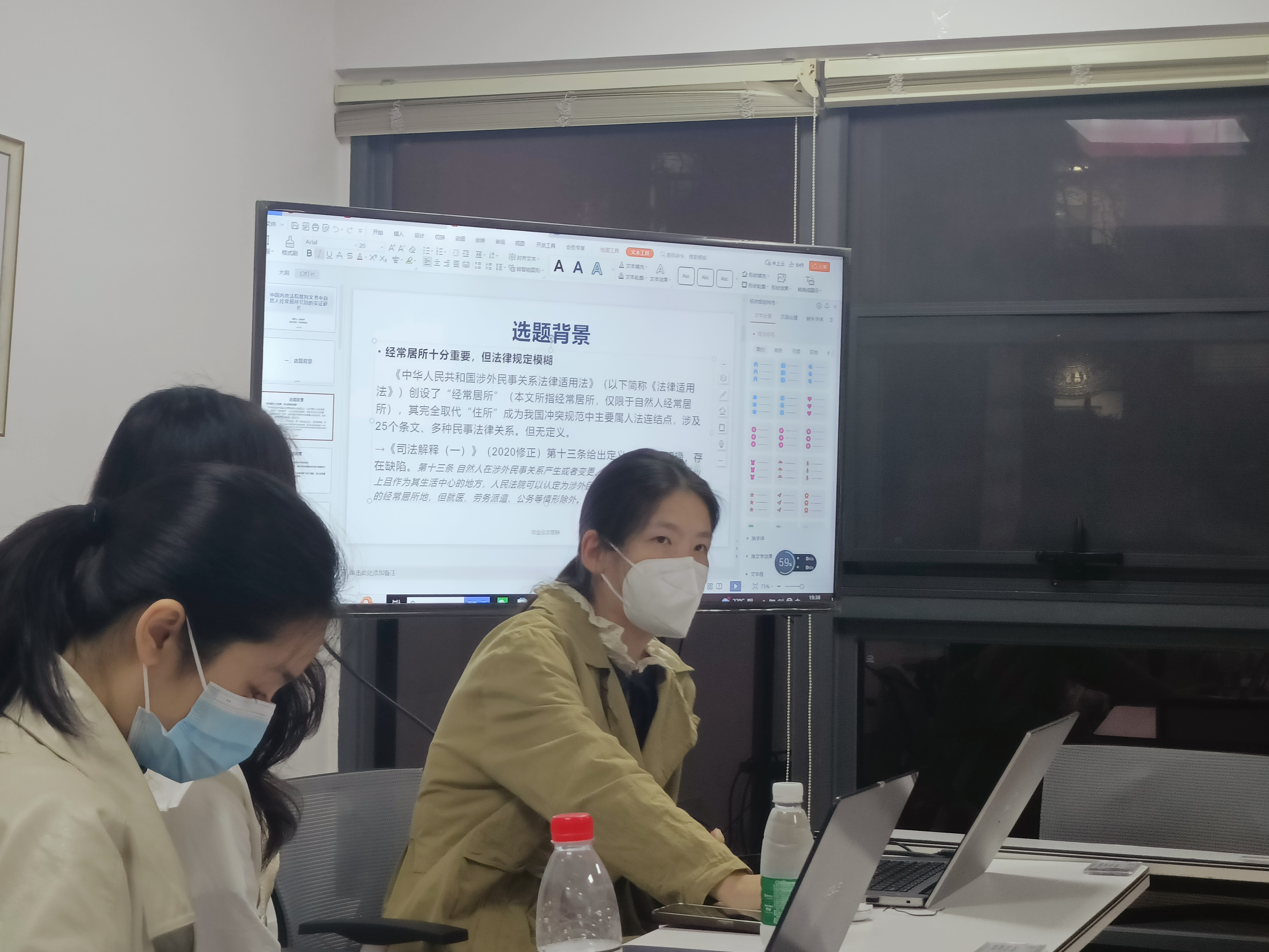 调查研究是成事之基、谋事之道。在习近平新时代中国特色社会主义思想指引下,章婧婷同志结合所思所学,进行了题为《中国内地法院裁判文书中自然人经常居所识别的实证研究》的分享,她着重考察了我国内地司法实践中自然人经常居所识别的状况。根据考察结果,她认为内地法院基于立法逻辑,对自然人经常居所的识别较少,存在说理不足、概念混淆、识别标准不当等问题,并提出法院裁判时应当充分考虑经常居所之本质并以其为指引,综合主观与客观因素进行权衡,考虑规范目的,必要时以《最高人民法院关于适用〈中华人民共和国涉外民事关系法律适用法〉若干问题的解释(一)》(2020修正)第十三条的“可以”这一要素突破既有规定。