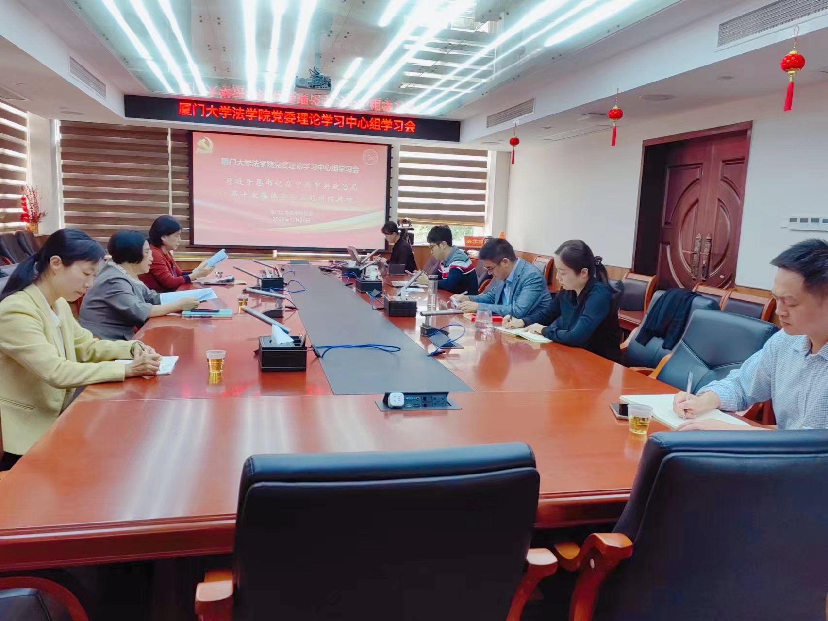 11月30日上午,法学院党委理论学习中心组在学院B220会议室召开集体学习研讨会议,专题学习习近平总书记在中共中央政治局第十次集体学习时的讲话精神。法学院党委书记何丽新主持会议并领学,学院党委理论学习中心组全体成员参加会议。