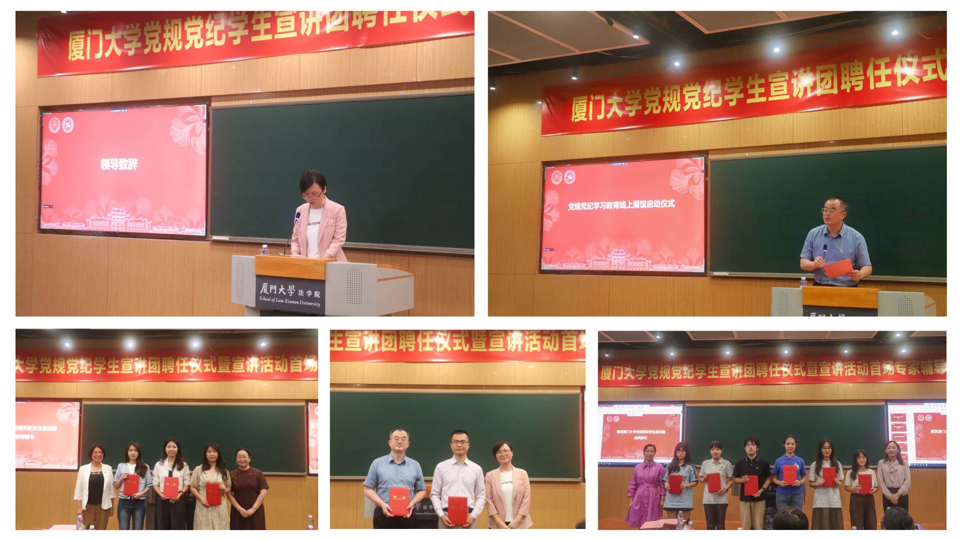 讲座开始前,举行了厦门大学党规党纪学生宣讲团聘任仪式和党规党纪学习教育数字展馆启动仪式,学生工作部部长洪春生、法学院党委书记何丽新出席仪式。洪春生在致辞中强调了党规党纪学习的重要意义并寄语宣讲团要扎实理论素养、磨炼实践能力、紧密联系青年学生群体。厦门大学法律认知、数据与智能研究中心执行主任吴旭阳副教授介绍党规党纪学习教育数字展馆并宣布展馆正式启动。