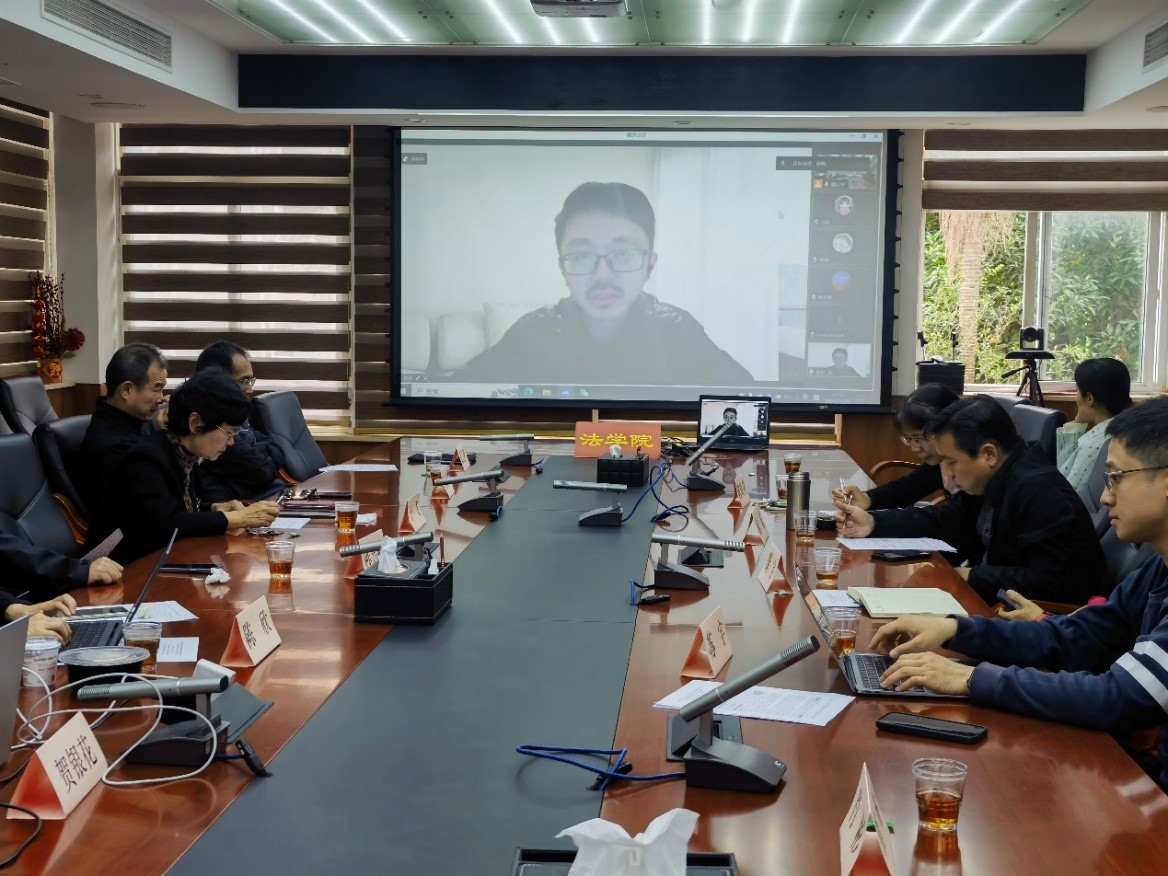 2023年12月6日,在荷兰访学的杨帆老师克服时差,在线上作题为《Back to the Roots: Modelizing the Legal Evaluation of Harmful Effect of State’s ICT Operation》的报告。杨老师从当前“俄乌冲突”涉及的“网络行动”等焦点事件出发,梳理三种主流观点后,他提出了将“网络行动危害后果”划分为“累积性后果”“聚合性后果”和“协同性后果”的对策建议。在讨论环节,与会师生纷纷发言,提出问题和建议,现场讨论气氛热烈。