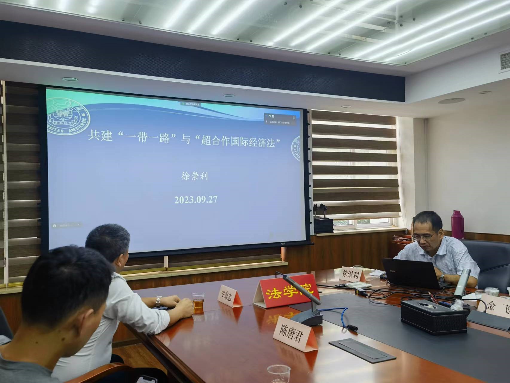 2023年9月27日,在法学院B220会议室,徐崇利教授作题为《共建“一带一路”与“超合作国际经济法”》的报告。他主要从提出“超合作国际经济法”的概念、阐释共建“一带一路”与“超合作国际经济法”之间的关系、以及运用国际制度竞争理论分析“一带一路”与“超合作国际经济法”之间关系三个部分展开。与会师生积极参与讨论,并就徐教授的报告提出一系列问题,徐教授均进行了回应。