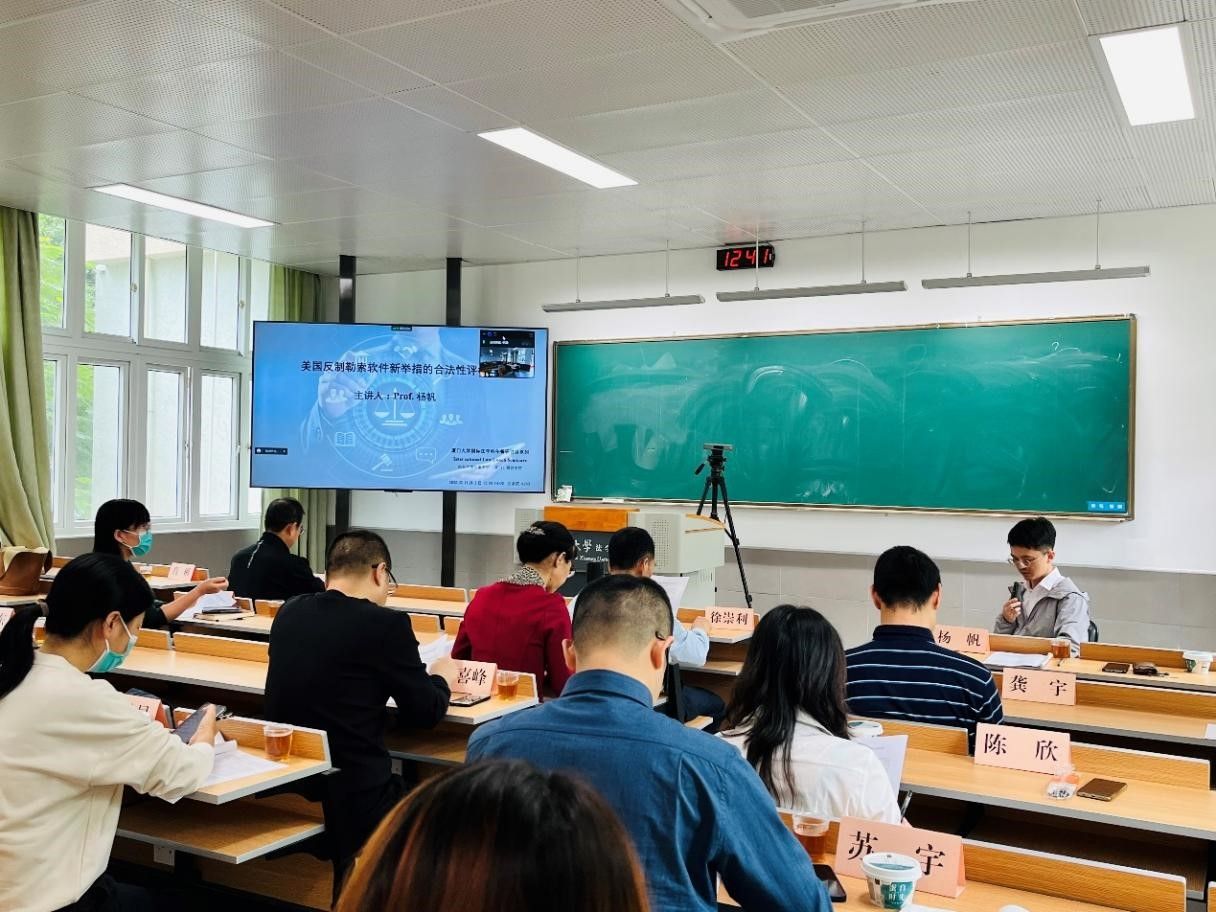 2022年11月2日,由杨帆助理教授以《美国反制勒索软件新举措的合法性评析》为题进行报告,其主要围绕美国反制勒索软件的新举措的批判空间展开探讨。他提出2021年以来勒索软件存在明显的新发展和新变向,尤其是对国家关键基础设施作为攻击对象被视为国家安全威胁。