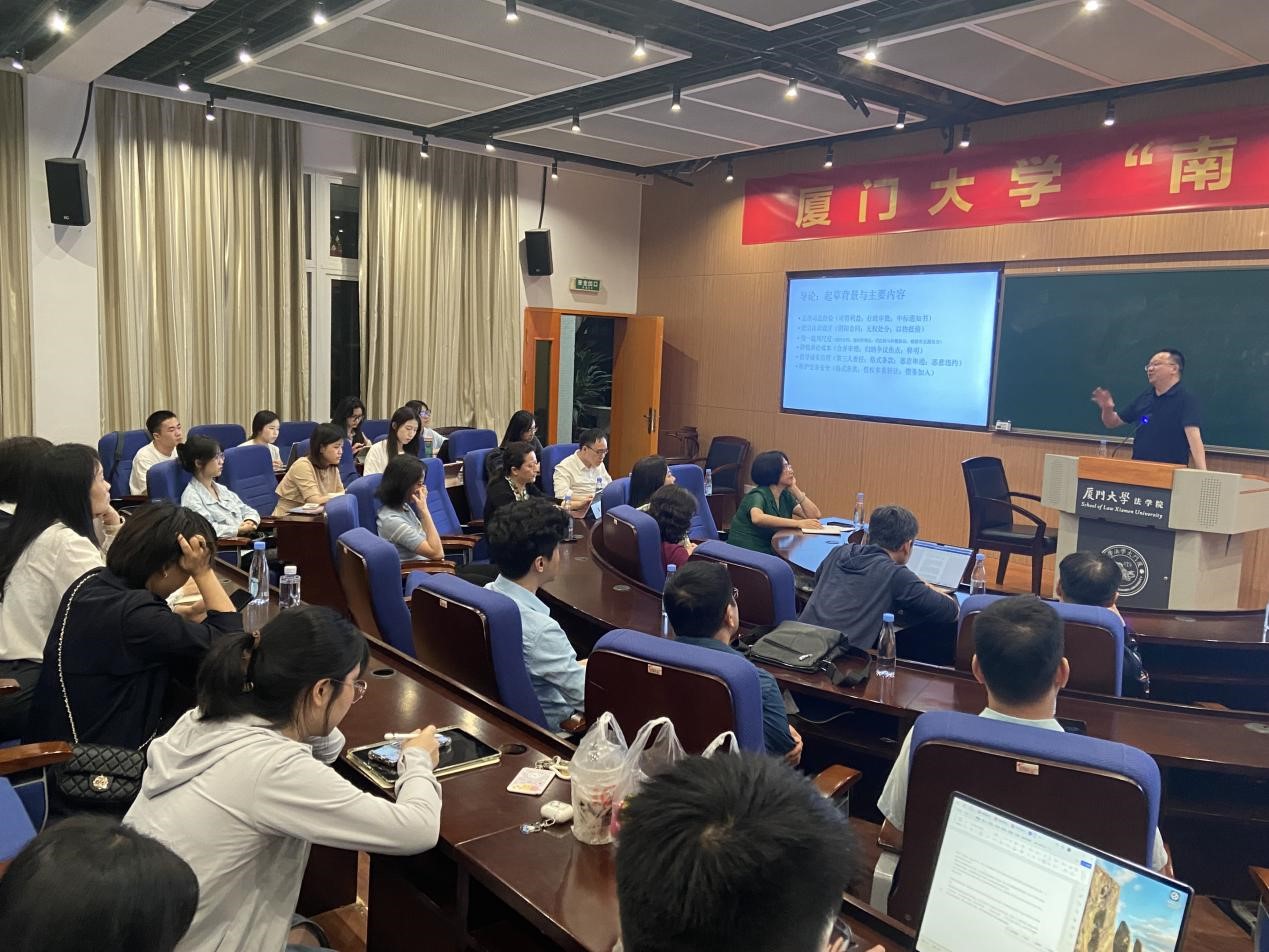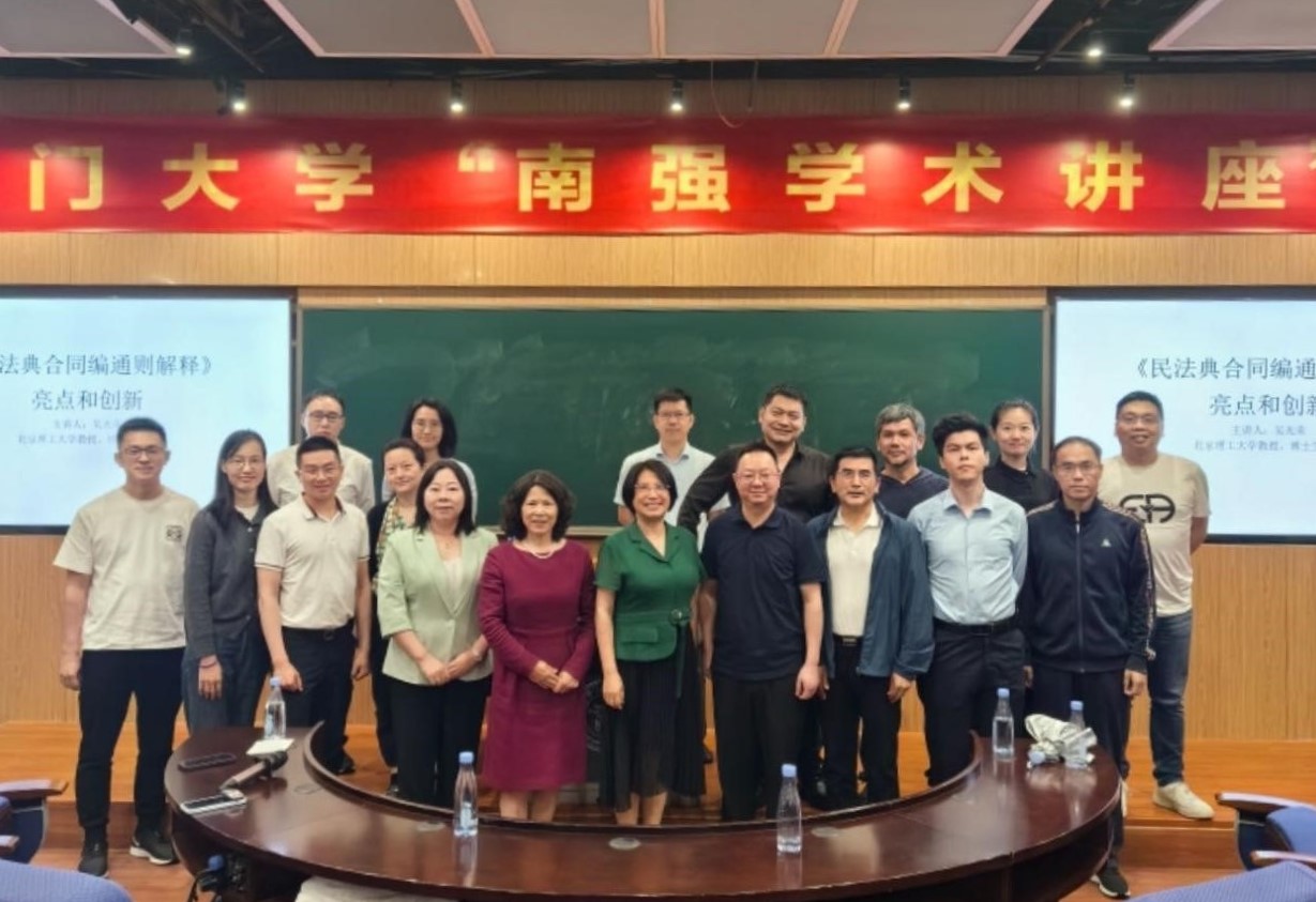 2024年4月27日19点,厦门大学法学院与福建旭丰律师事务所联合主办的第四十三期旭丰民商法论坛在法学院B138教室如期举行。本次论坛主讲人是知名民法学者、最高人民法院前法官、北京理工大学法学院吴光荣教授。此次讲座由厦门大学法学院何丽新教授主持,厦门市律师协会王桂英会长、法学院蒋月教授、肖伟教授、王杏飞教授、吴旭莉副教授、魏磊杰副教授、齐云副教授、闫语助理教授、林斯韦助理教授等出席本场讲座。此外来自厦门市中院、旭丰律师事务所、厦门市仲裁委以及厦大法学院的诸多同仁、学生共计80多人共同参与。